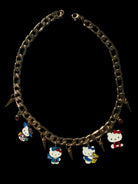 The Hello Kitty Coven Necklace is a maximalist charm piece made for the ones who collect symbols, stories, and a little bit of chaos. Featuring a chunky gold-tone chain adorned with multiple Hello Kitty charms and spike accents, this choker feels playful, powerful, and unapologetically bold.