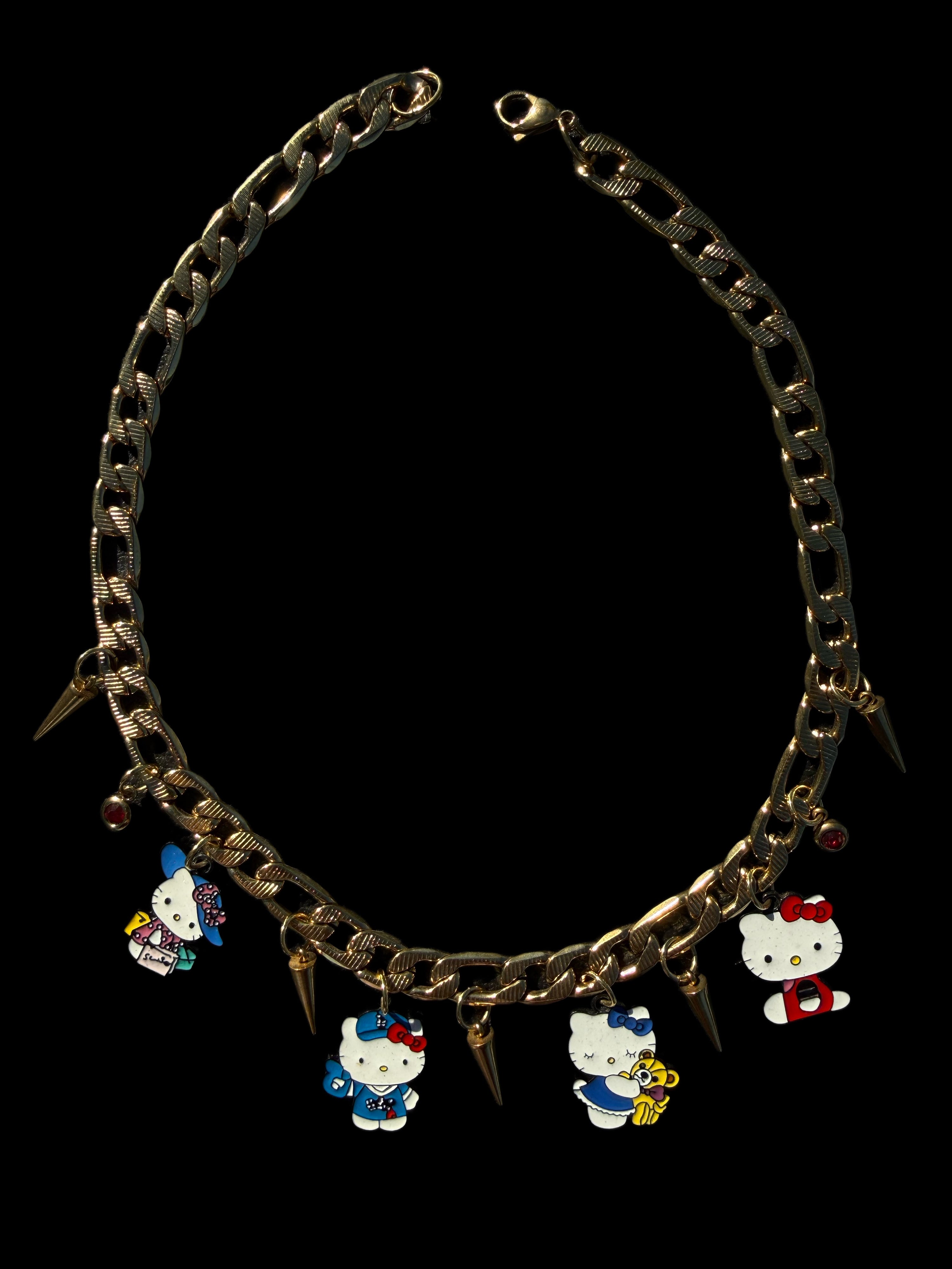 Each charm tells its own story — innocence, nostalgia, protection, and rebellion all layered together. The spikes add edge and grounding, while the Kitty charms keep the energy light, fun, and mischievous. It’s not subtle, and it’s not meant to be.