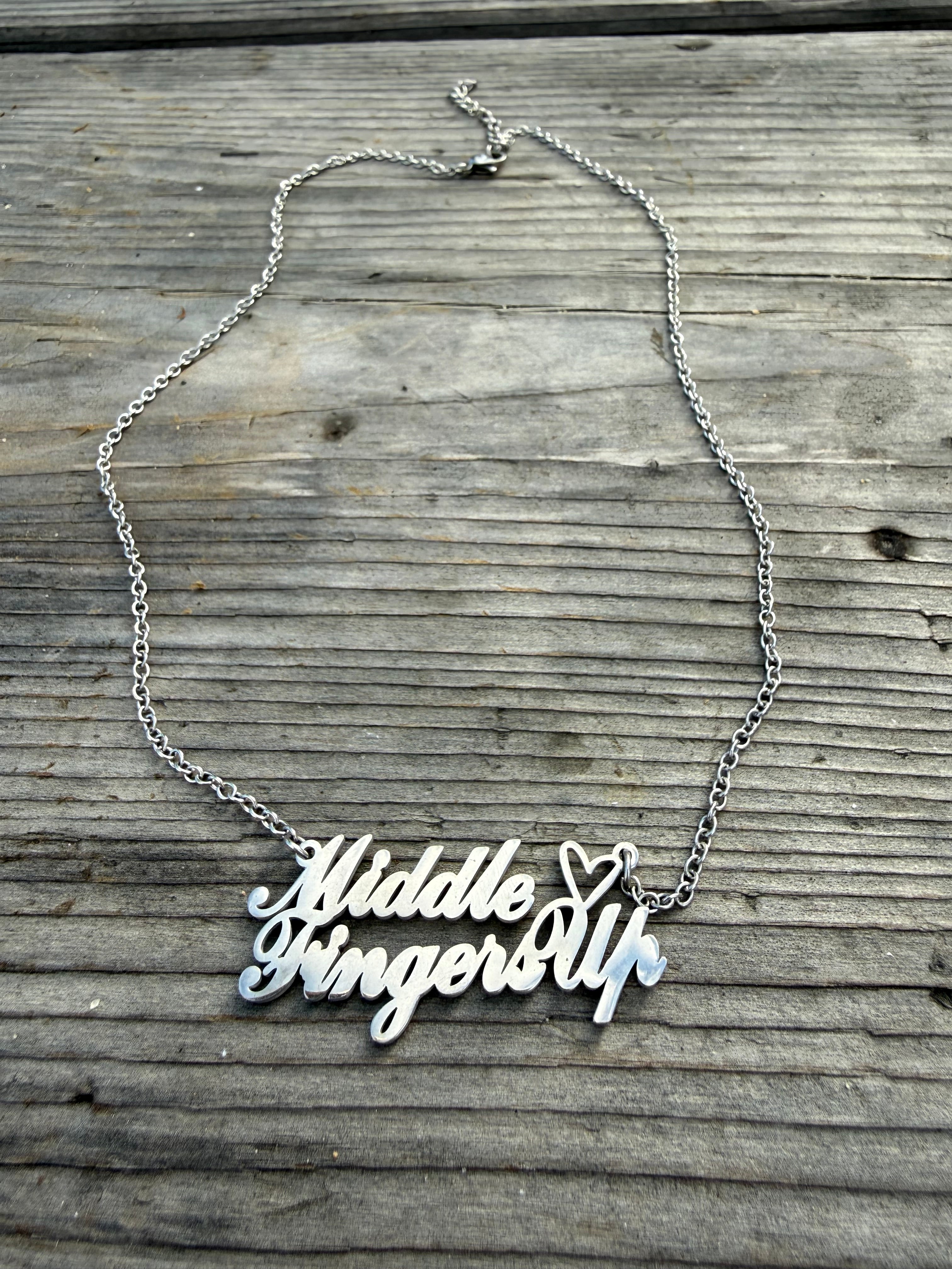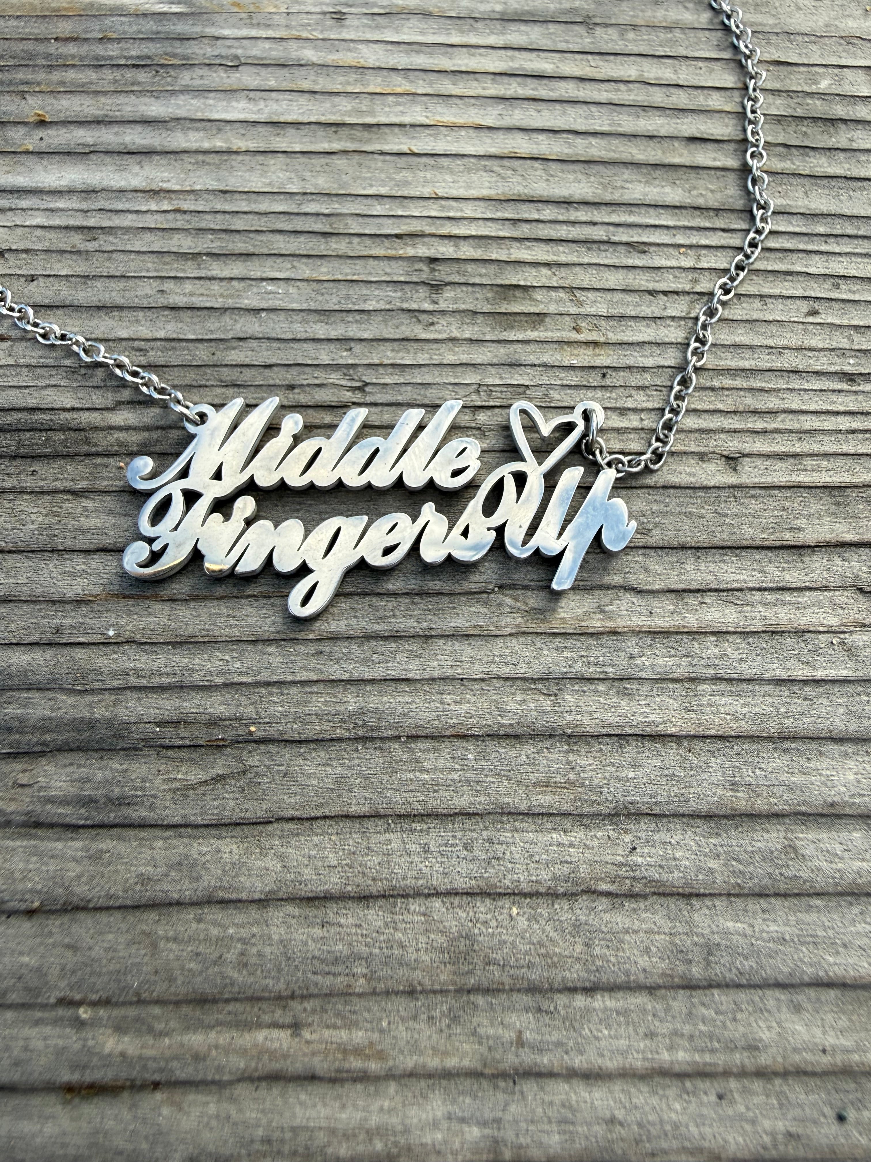 Middle Finger Fingers Up Heart Necklace