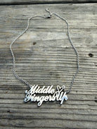 Designed in smooth script lettering with a heart detail, this necklace blends sass, humor, and empowerment. Lightweight and durable, it’s made for everyday wear, nights out, festivals, and moments when you’re done explaining yourself.