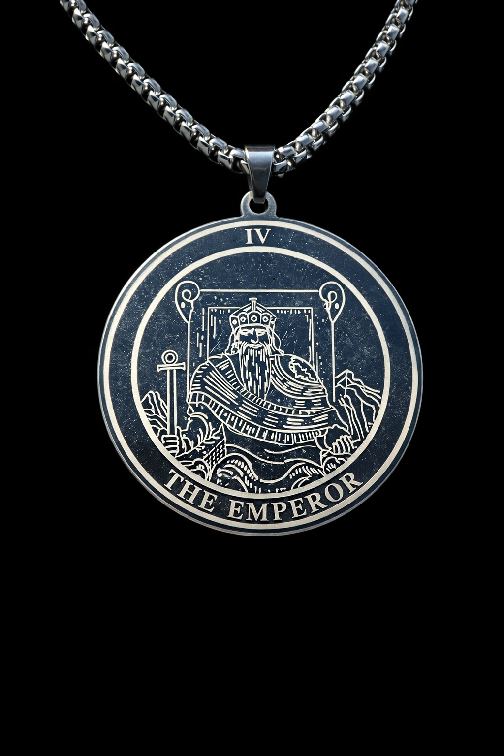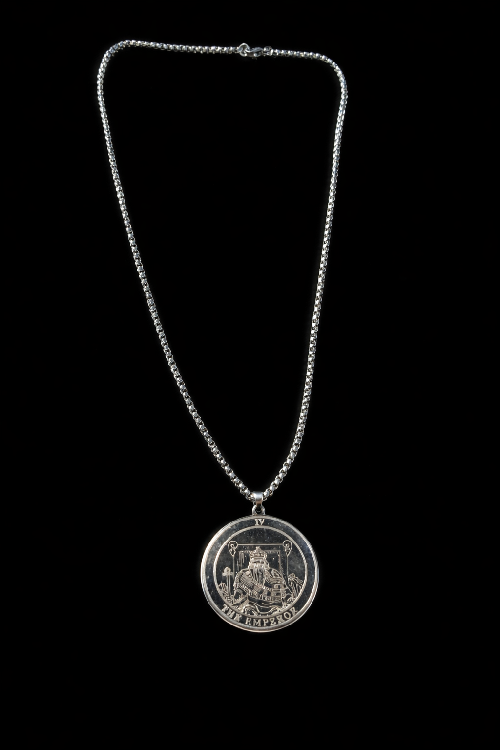 Crafted from durable stainless steel, this medallion is designed for everyday wear. It is tarnish-resistant, long-lasting, and maintains its shine through daily movement and ritual. The classic medallion style gives this piece a timeless, bold presence while anchoring the symbolic energy of The Emperor (IV).