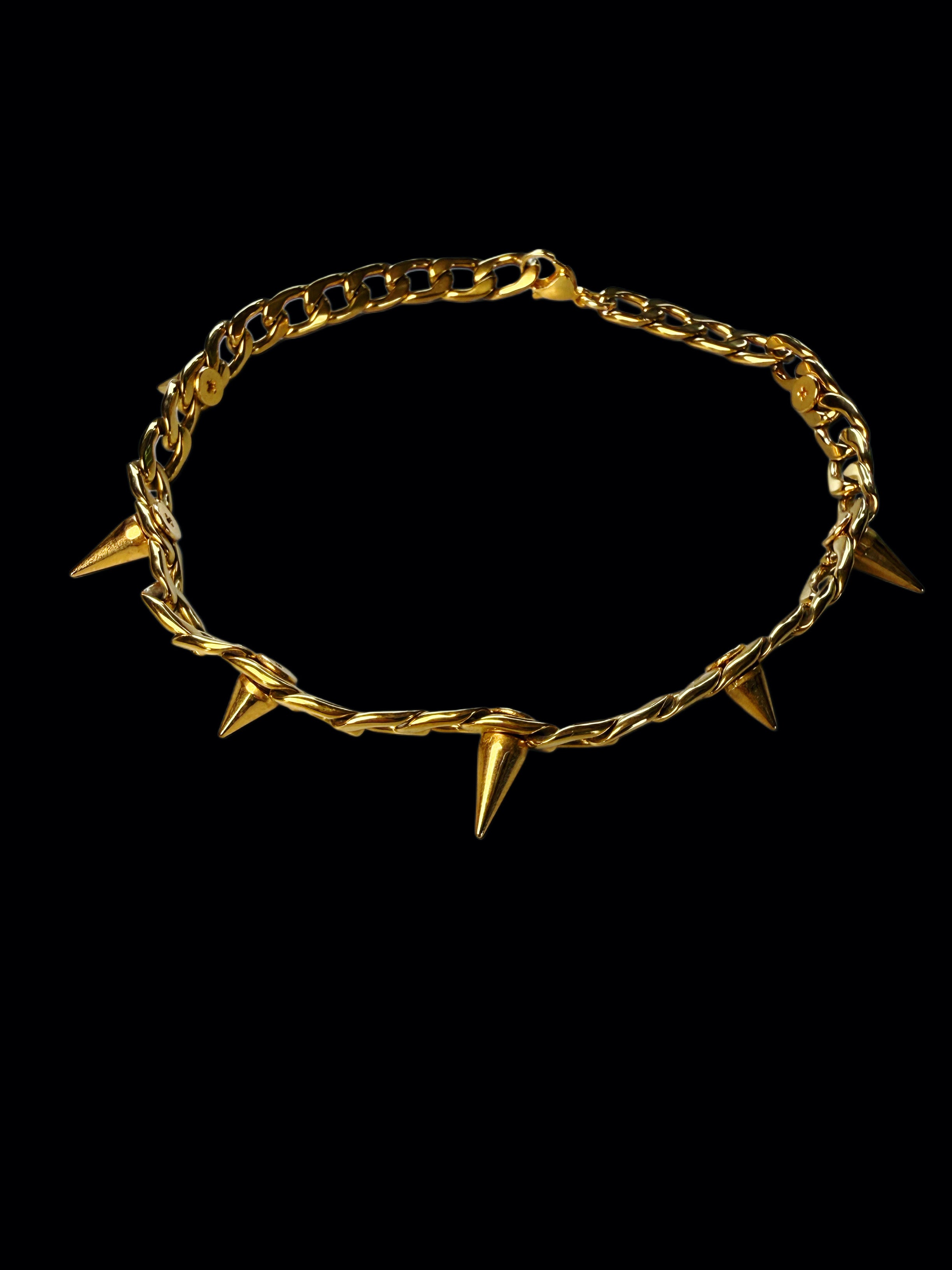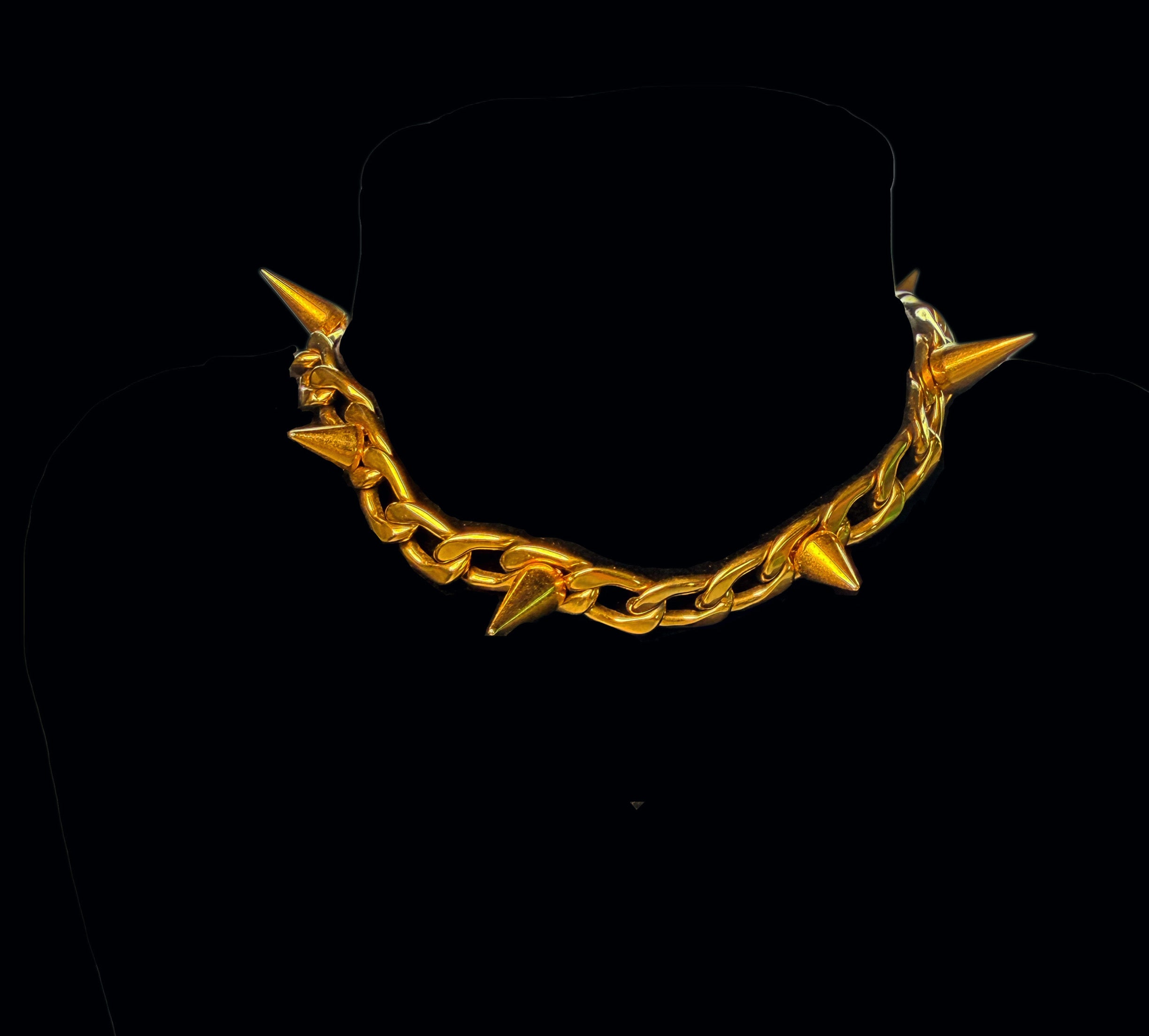 The Golden Ascension Choker is a statement of power, protection, and rising into your highest self. Crafted from durable stainless steel and finished in radiant gold, this choker features bold spike accents that symbolize strength, sovereignty, and unapologetic self-expression.
