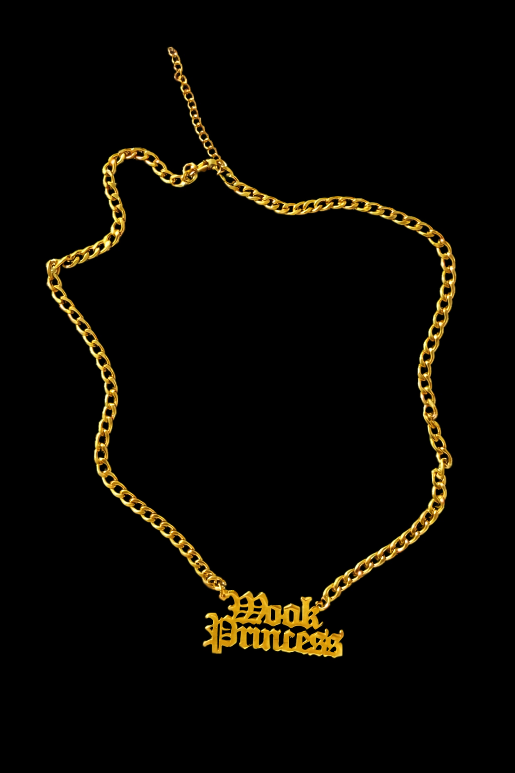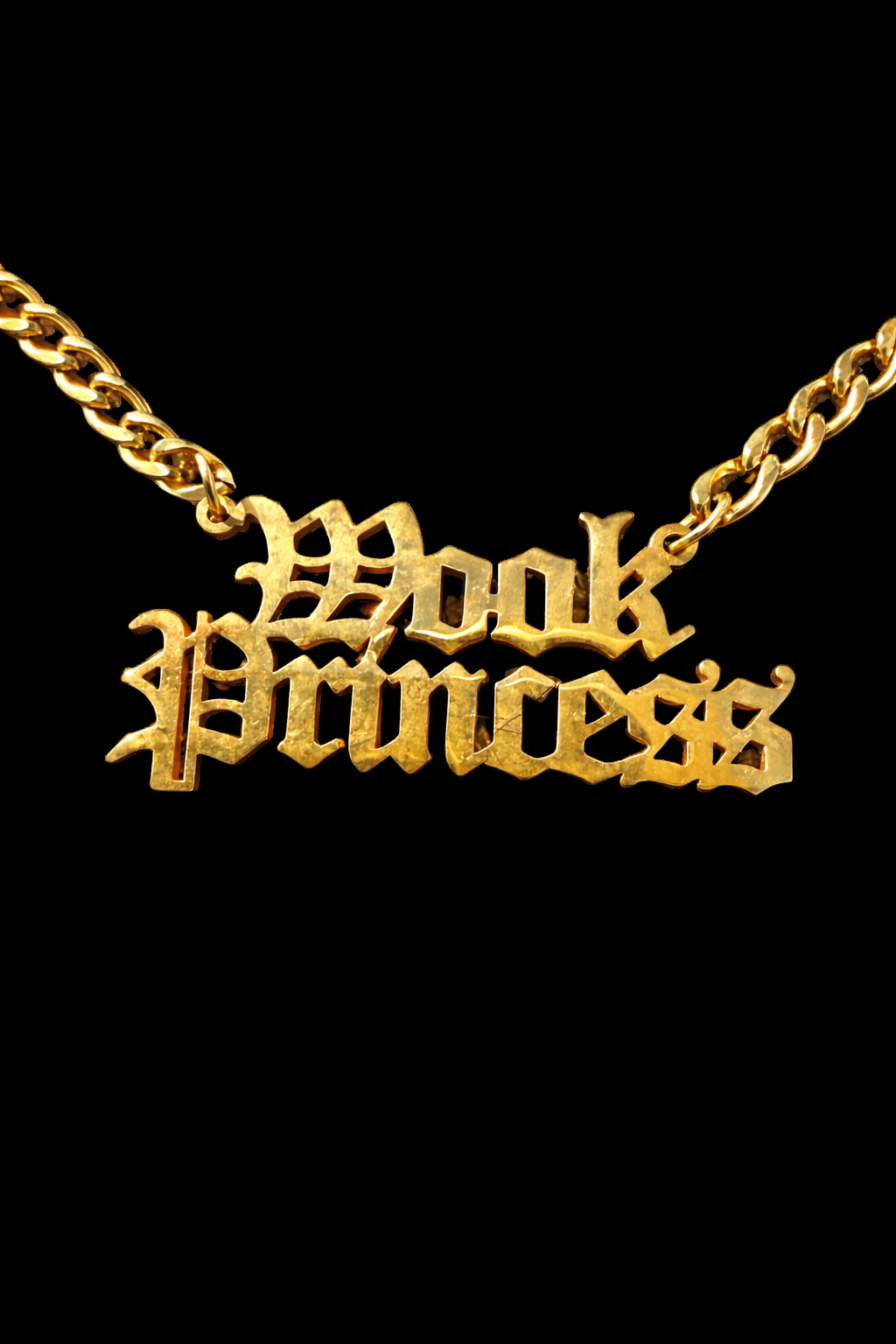 For the ones who move to their own rhythm and wear their identity proudly. The Wook Princess necklace is a bold statement piece featuring gothic-style lettering on a rich gold-tone chain. Designed to stand out, this necklace blends playful rebellion with unapologetic confidence.
