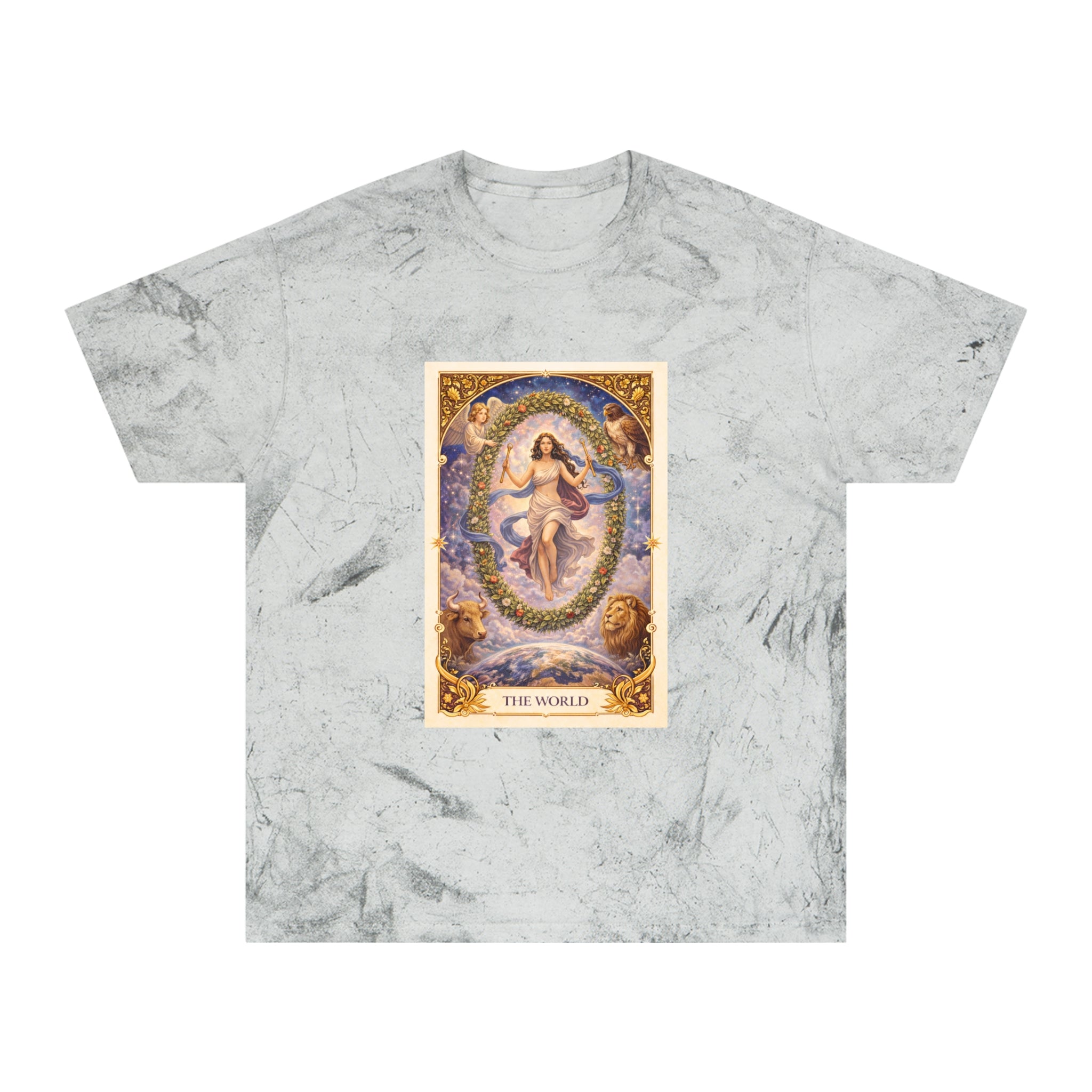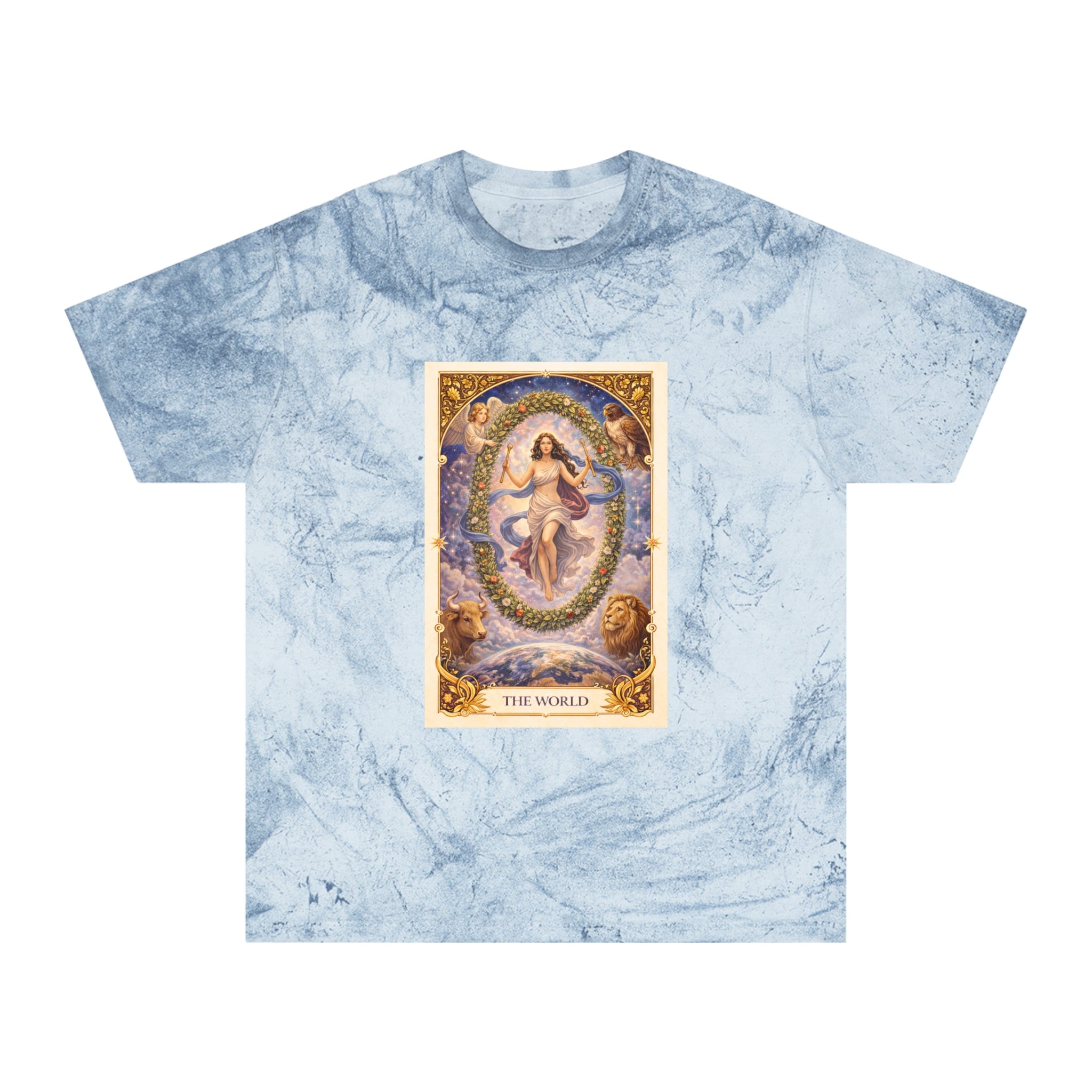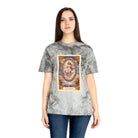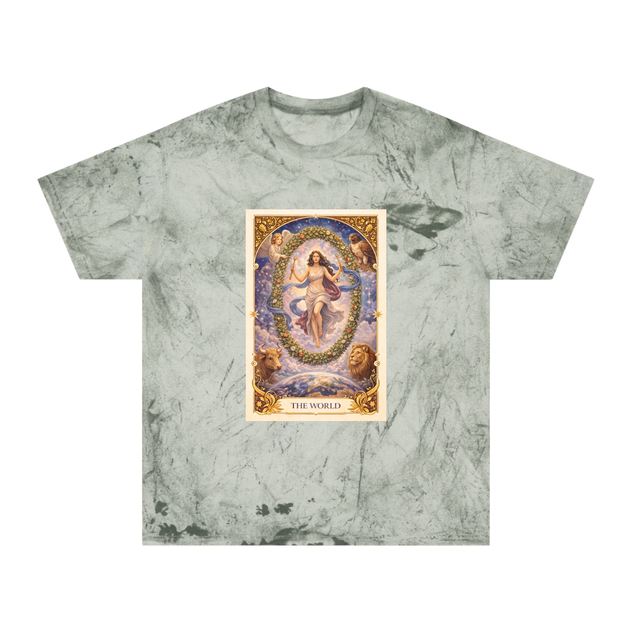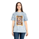 Printed on a Comfort Colors Color Blast tee, this piece carries soft, mystical energy. The garment-dyed, marbled fabric mirrors the shifting nature of the subconscious — no two shirts are exactly alike, just as no emotional journey unfolds the same way twice. The vintage, worn-in texture grounds the ethereal symbolism, making the mystery wearable and real.