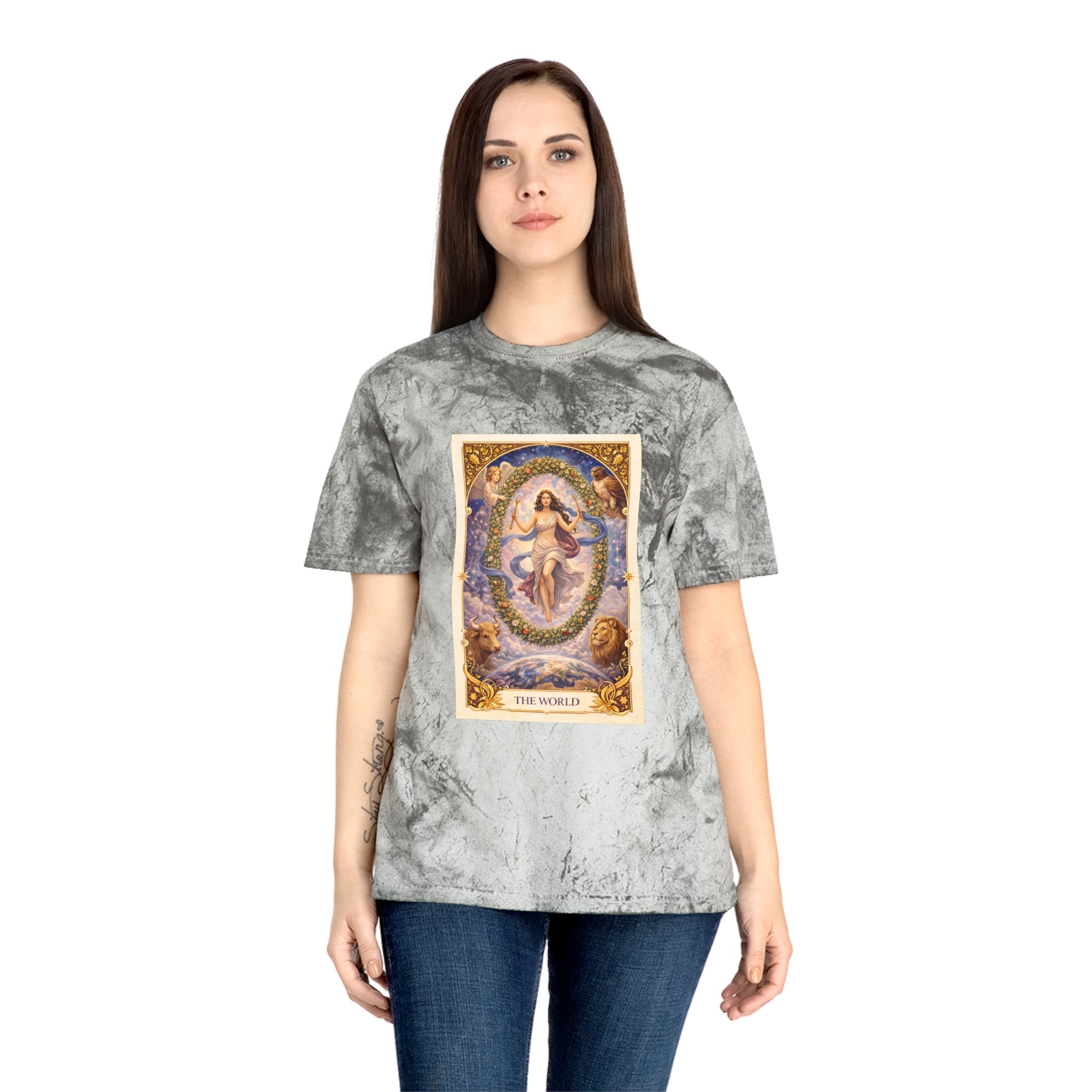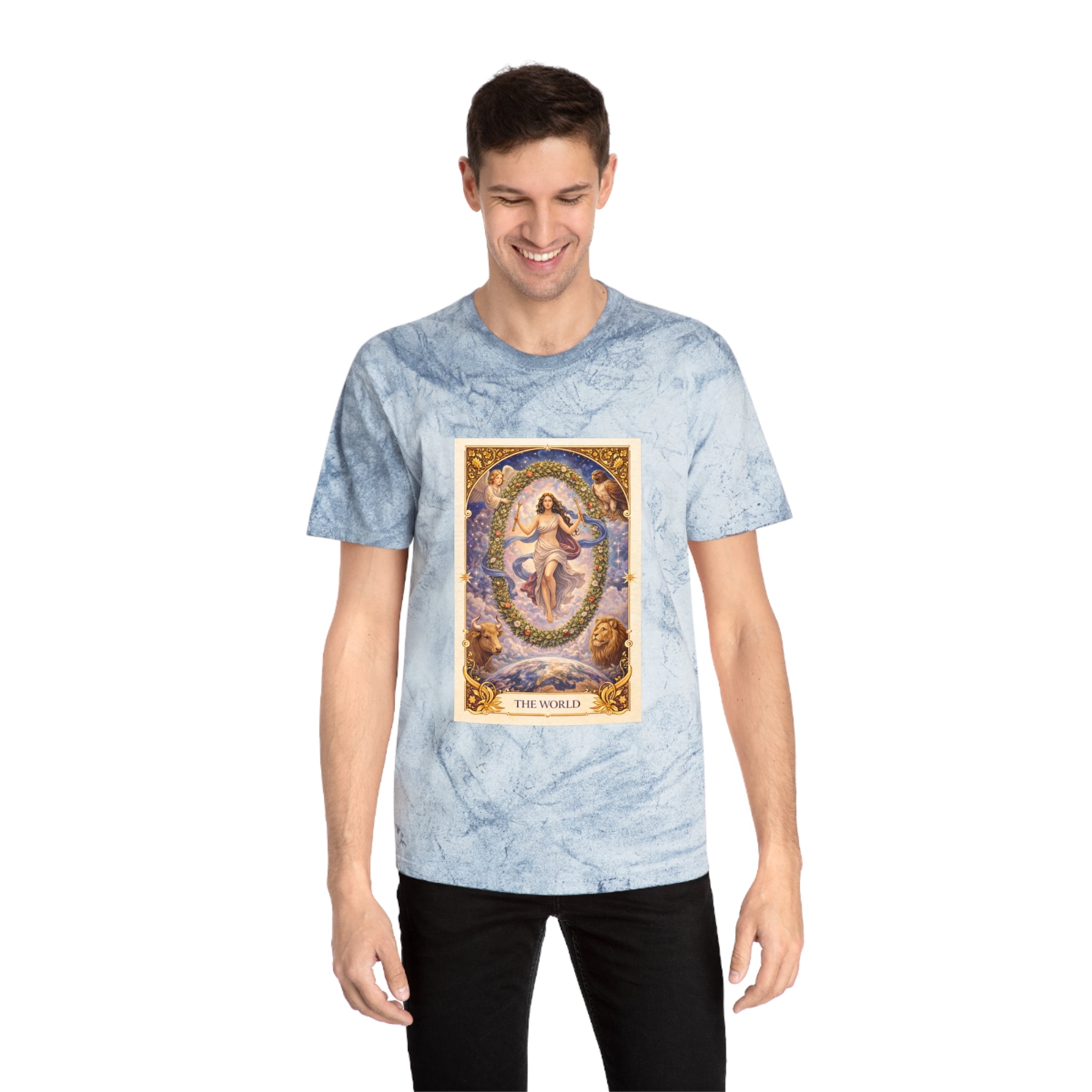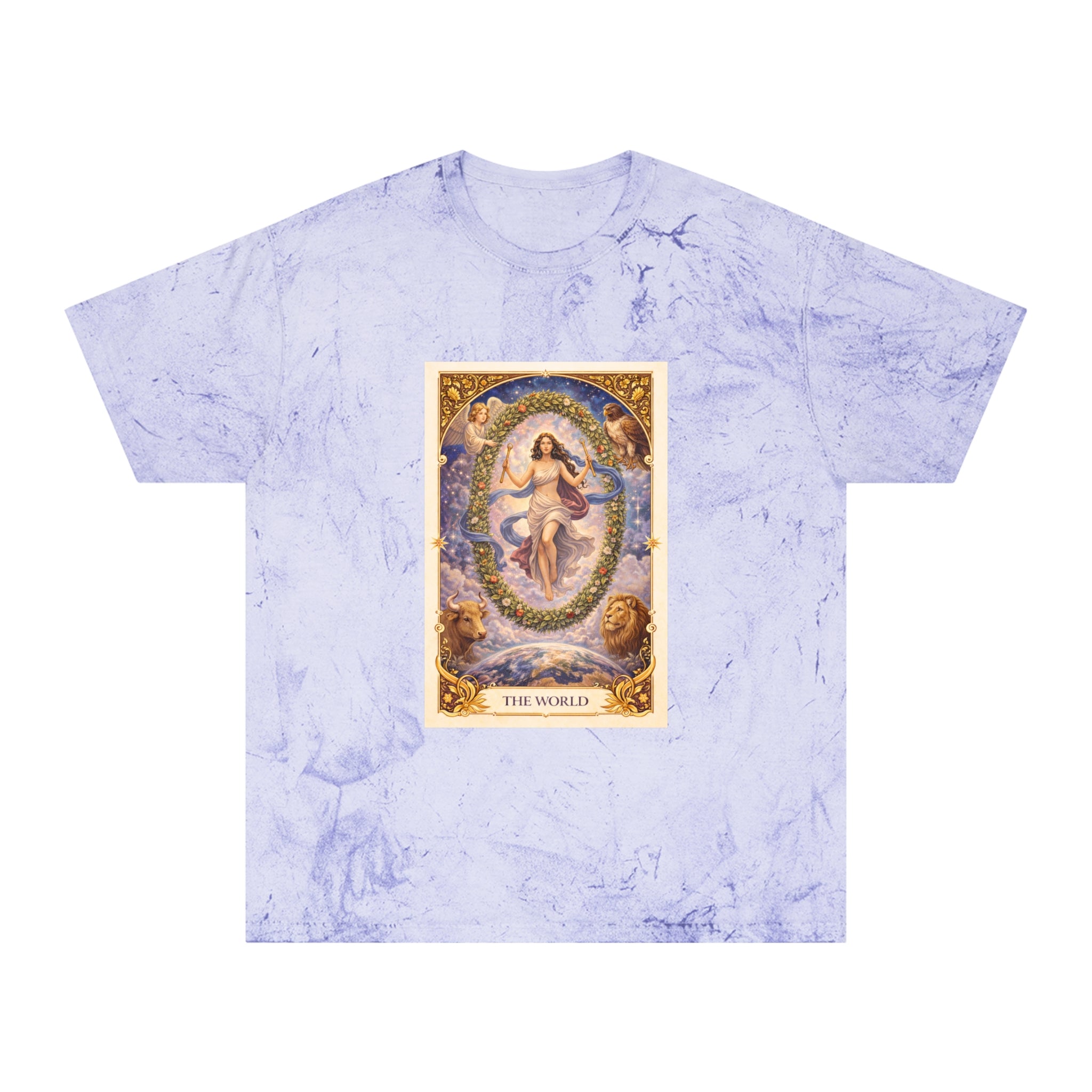 Printed on a Comfort Colors Color Blast tee, this piece carries soft, mystical energy. The garment-dyed, marbled fabric mirrors the shifting nature of the subconscious — no two shirts are exactly alike, just as no emotional journey unfolds the same way twice. The vintage, worn-in texture grounds the ethereal symbolism, making the mystery wearable and real.