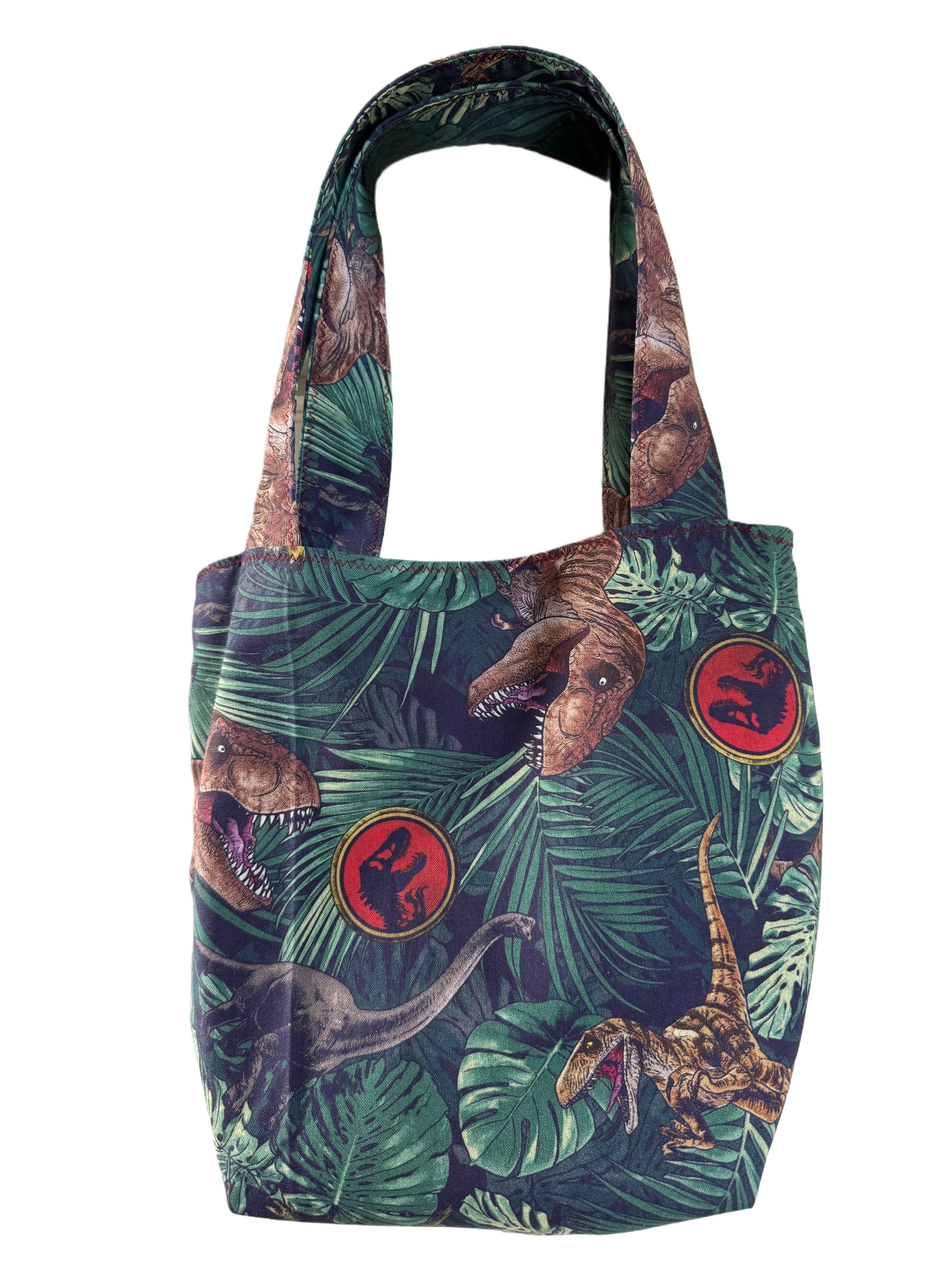 This handmade cotton tote features a striking dinosaur jungle print with deep green tones and rich accent details. Durable yet lightweight, it’s perfect for everyday use—whether you’re heading to the market, carrying books, or packing daily essentials. Thoughtfully crafted and one of a kind, each tote has its own unique personality.