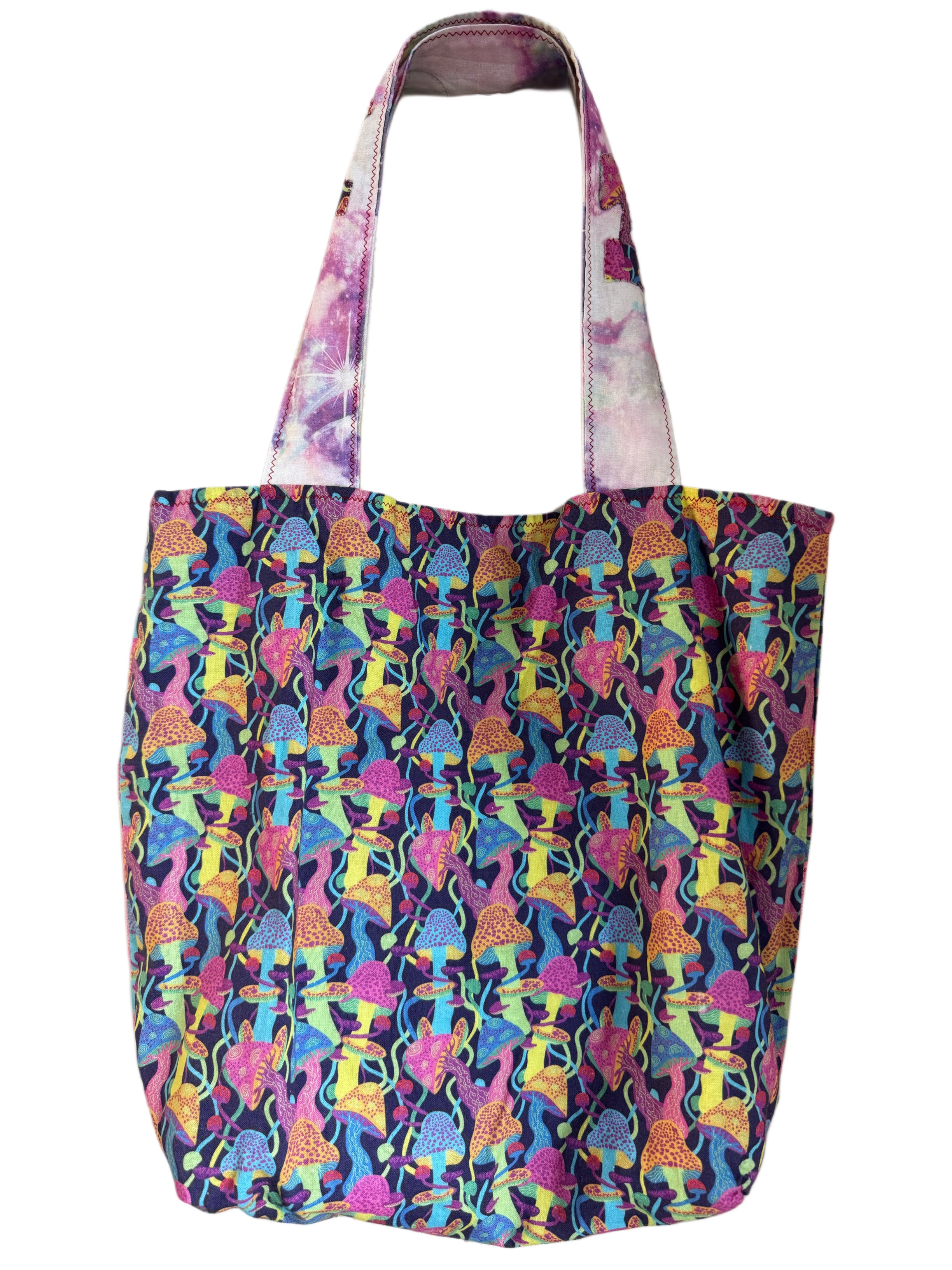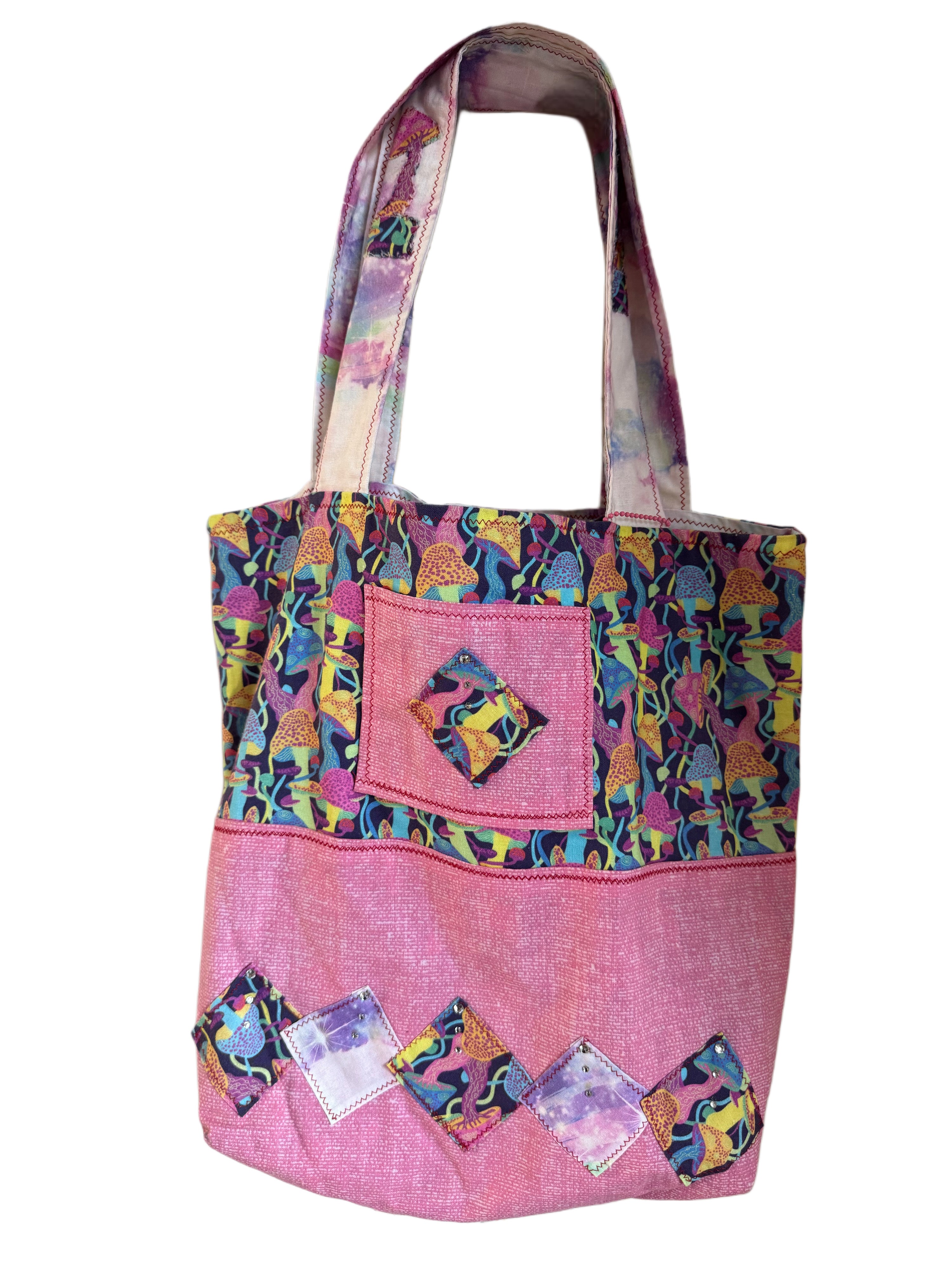 Soft pink tones and playful mushroom details make the Pink Fungi Dream Tote feel whimsical and dreamy. This handmade cotton tote is perfect for lovers of fairy-garden aesthetics and gentle, magical design.