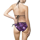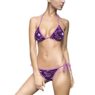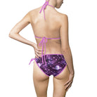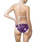 - Two-piece triangle top with tie-side bottoms and elastic straps