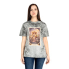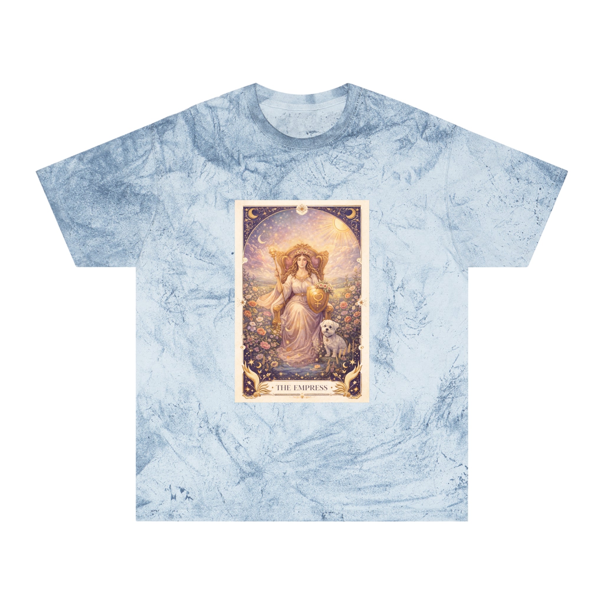Printed on a Comfort Colors Color Blast tee, this shirt feels rich, warm, and effortlessly regal. The garment-dyed, marbled fabric creates a sun-kissed, vintage softness that makes the artwork feel timeless — like a sacred image passed down through generations. Each tee is uniquely dyed, ensuring no two are exactly alike, just like the creative force you carry.