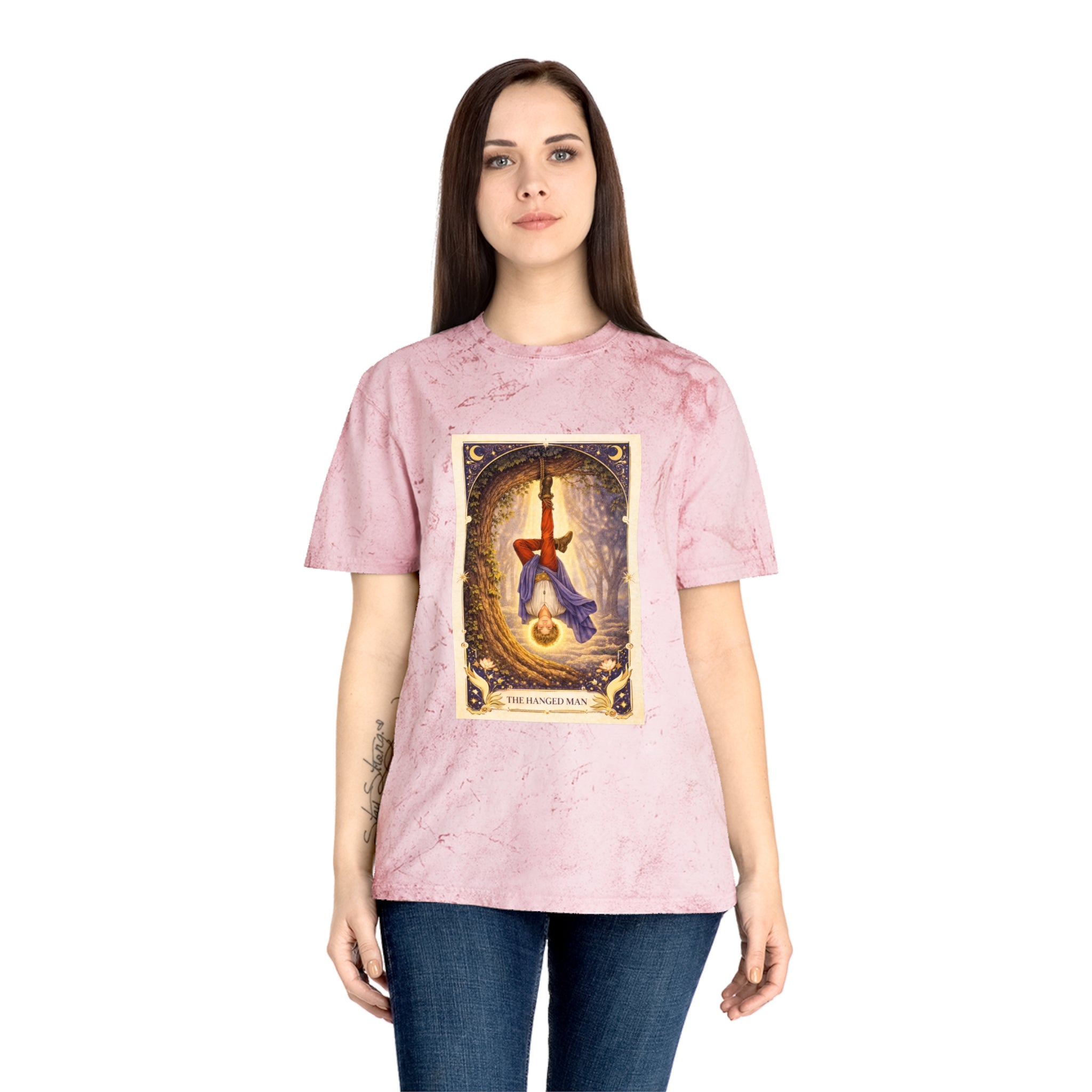 Printed on a Comfort Colors Color Blast tee, this piece carries a soft, worn-in feel that mirrors the card’s message — ease, acceptance, and quiet strength. The marbled, garment-dyed fabric gives each shirt a unique character, reflecting the personal transformation that unfolds when you trust divine timing.