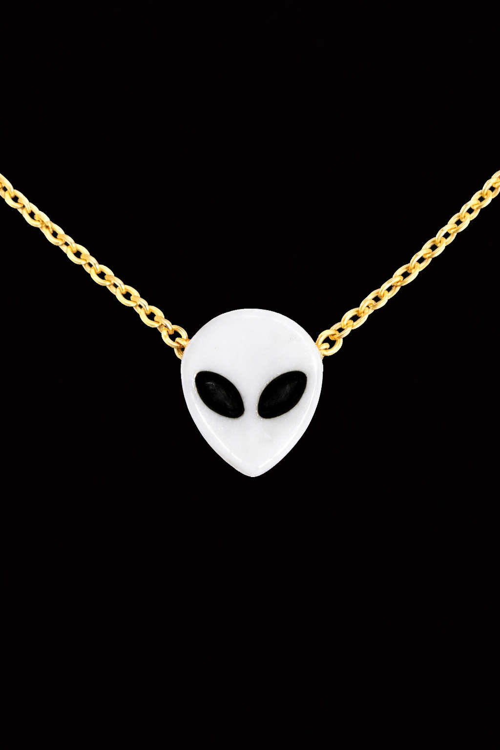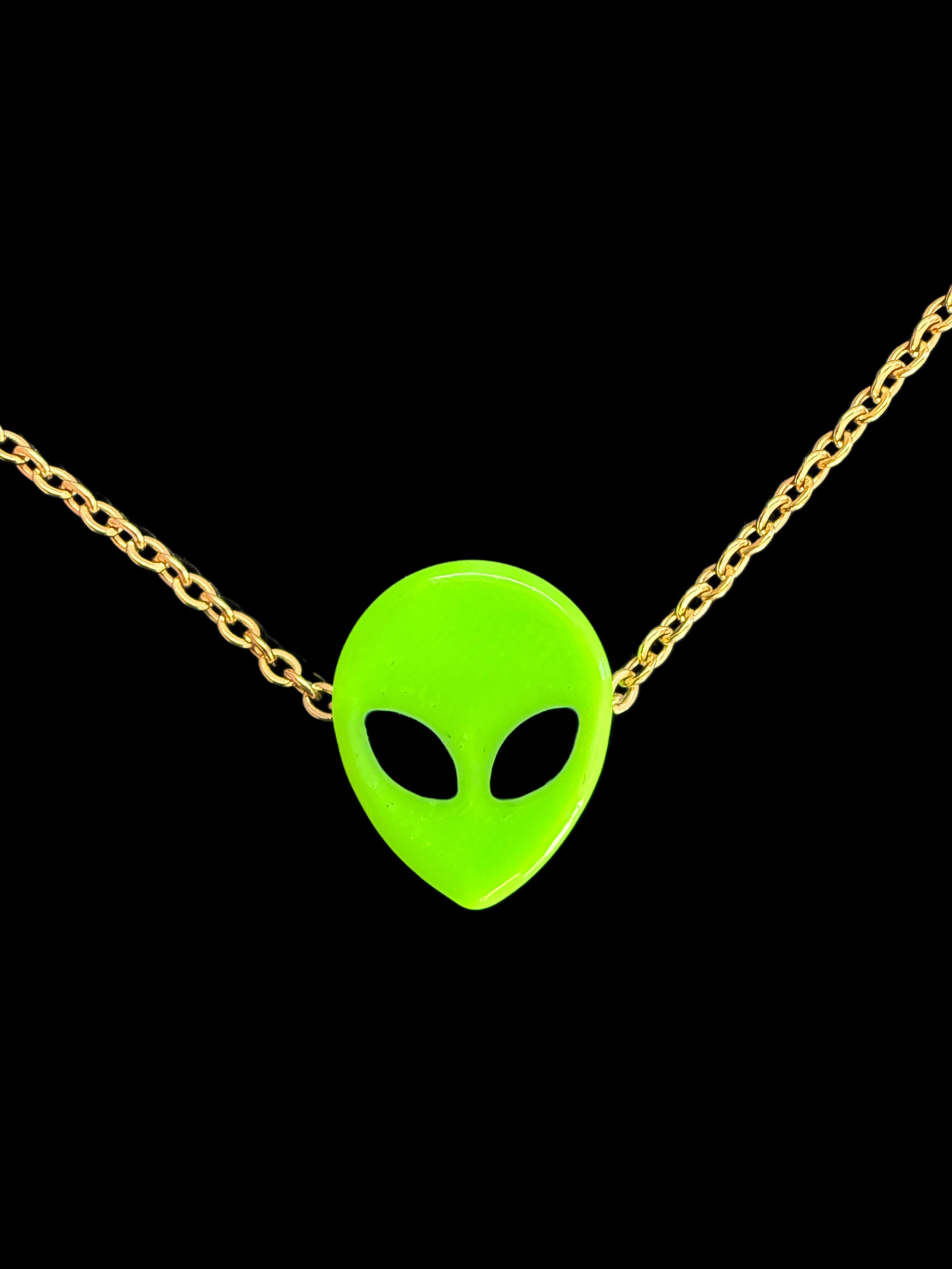 Aliens symbolize being different, standing out, and knowing you don’t belong in boxes made for everyone else. This necklace is for the ravers, the weirdos, the star travelers, and anyone who moves through the world on their own frequency.