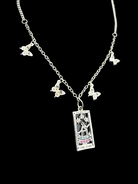 The Star Tarot Butterfly Necklace features a detailed “The Star” tarot card pendant accented with delicate butterfly charms along a silver-tone chain. Feminine, intuitive, and celestial — this piece carries the frequency of healing and higher alignment.