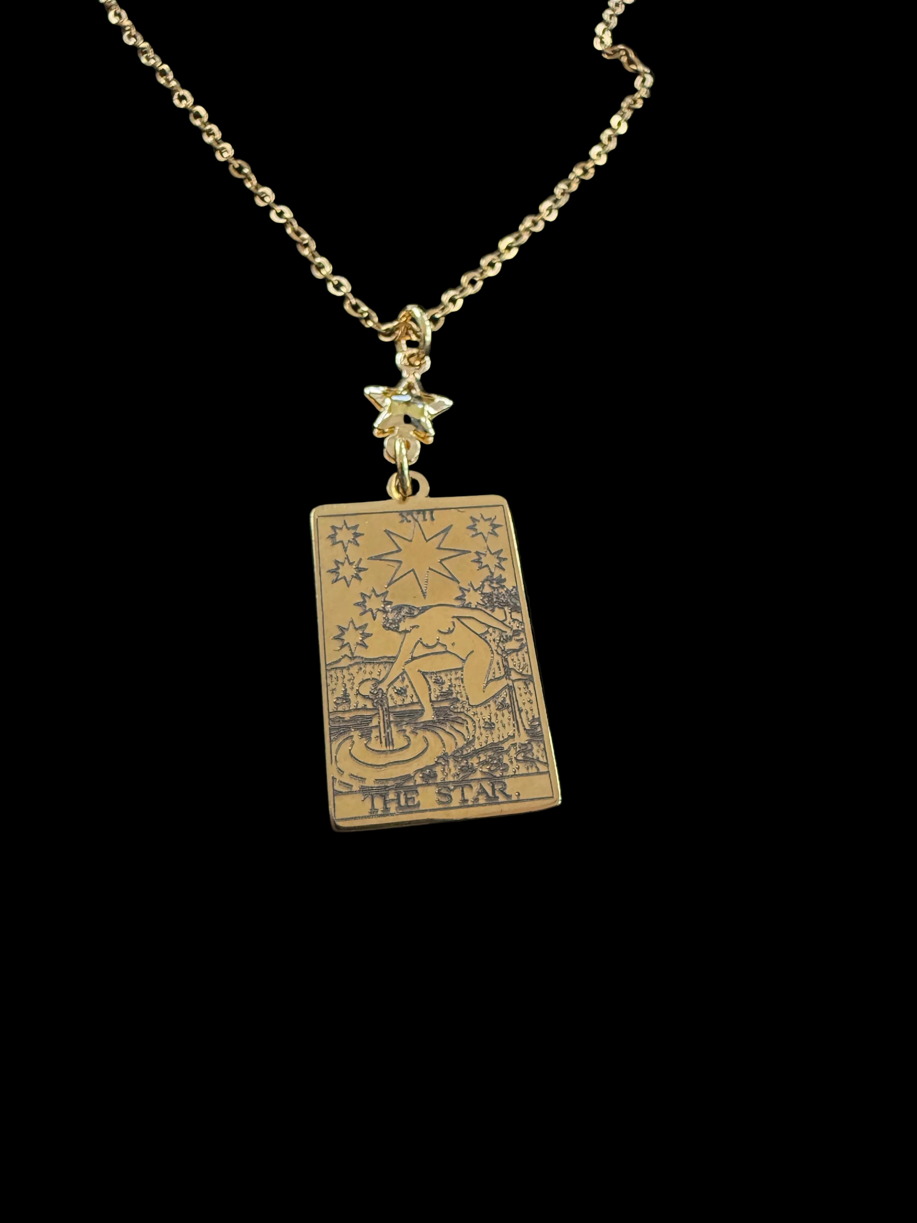 This gold-tone pendant features the classic Star tarot engraving, paired with a delicate star detail above it — symbolizing protection, intuition, and being guided exactly where you are meant to go.