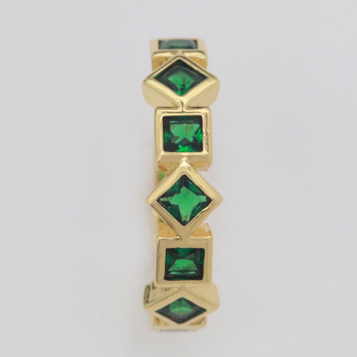 The Aurora Grid CZ Stacking Ring features a bold yet refined geometric design, set with square-cut cubic zirconia stones framed in a sleek gold band. Its clean lines and modern structure make it perfect for stacking or wearing solo as a statement piece.