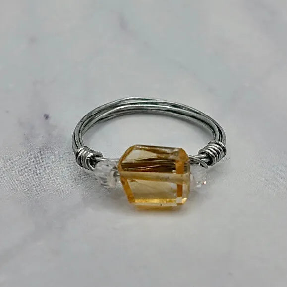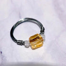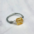 This gorgeous natural citrine is so clear and has a tiny rainbow prism inside. Made with steel and two cab created diamonds.