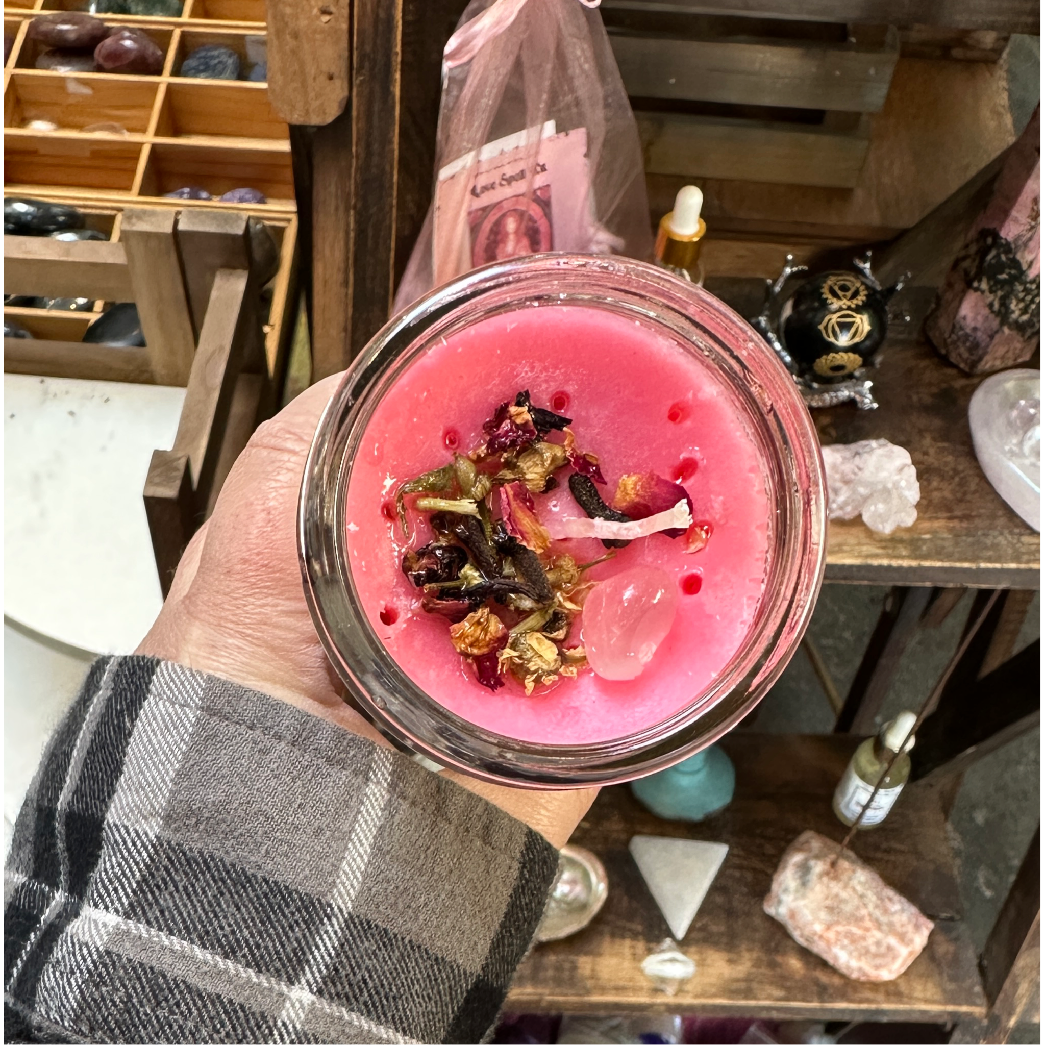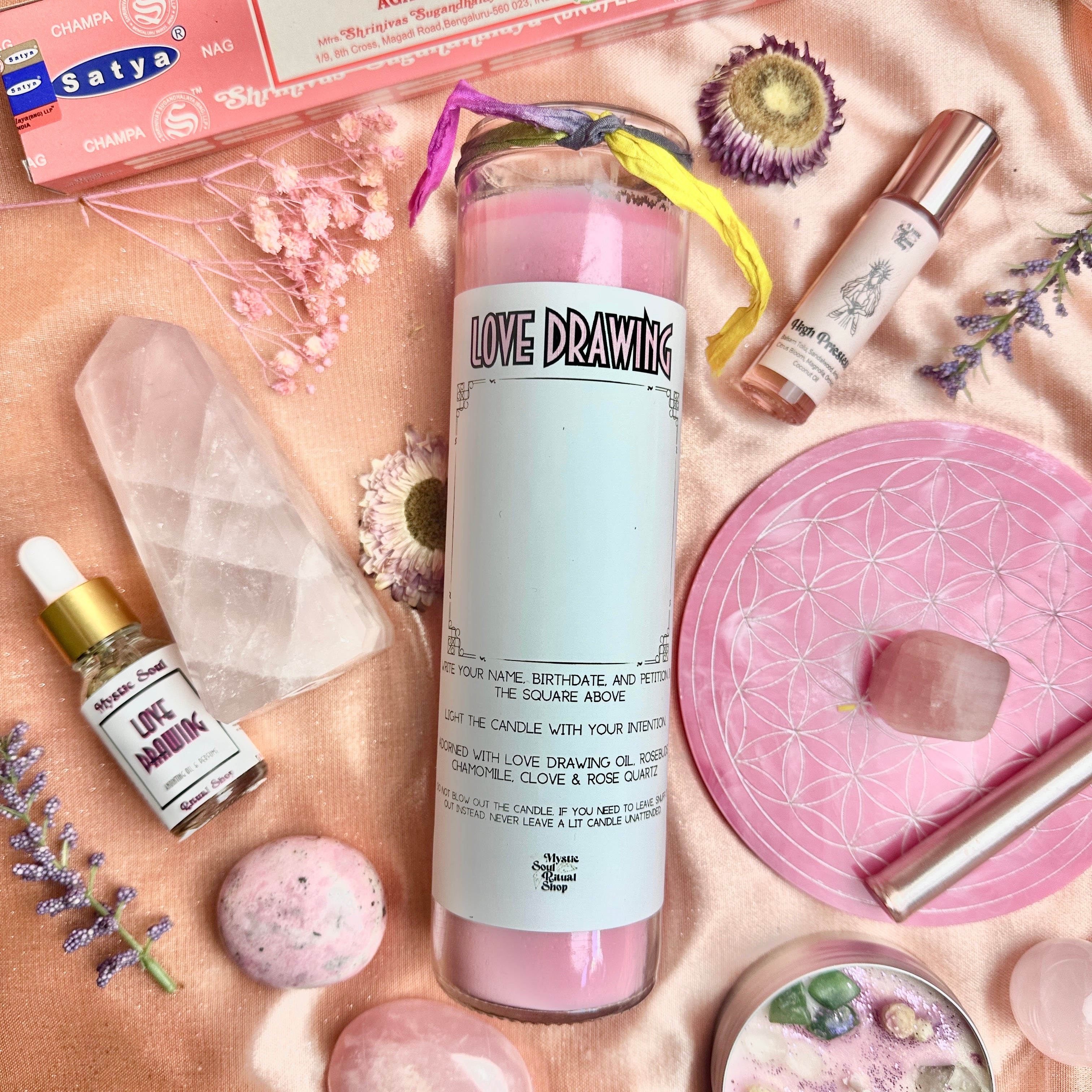 • Infused with Powerful Intentions: Each candle is dressed with love-attracting herbs, crystals, and oils to enhance your manifestation rituals.