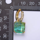 The Emerald Tide Huggie Drops feature vibrant green aqua square-cut cubic zirconia suspended from sleek micro-pavé huggie hoops. Designed to catch the light with every movement, these earrings blend modern geometry with a fresh, ocean-inspired glow.