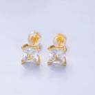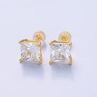24K Gold Filled 5mm, 6mm, 7mm, 9mm Clear CZ Square Baguette Stud Earrings