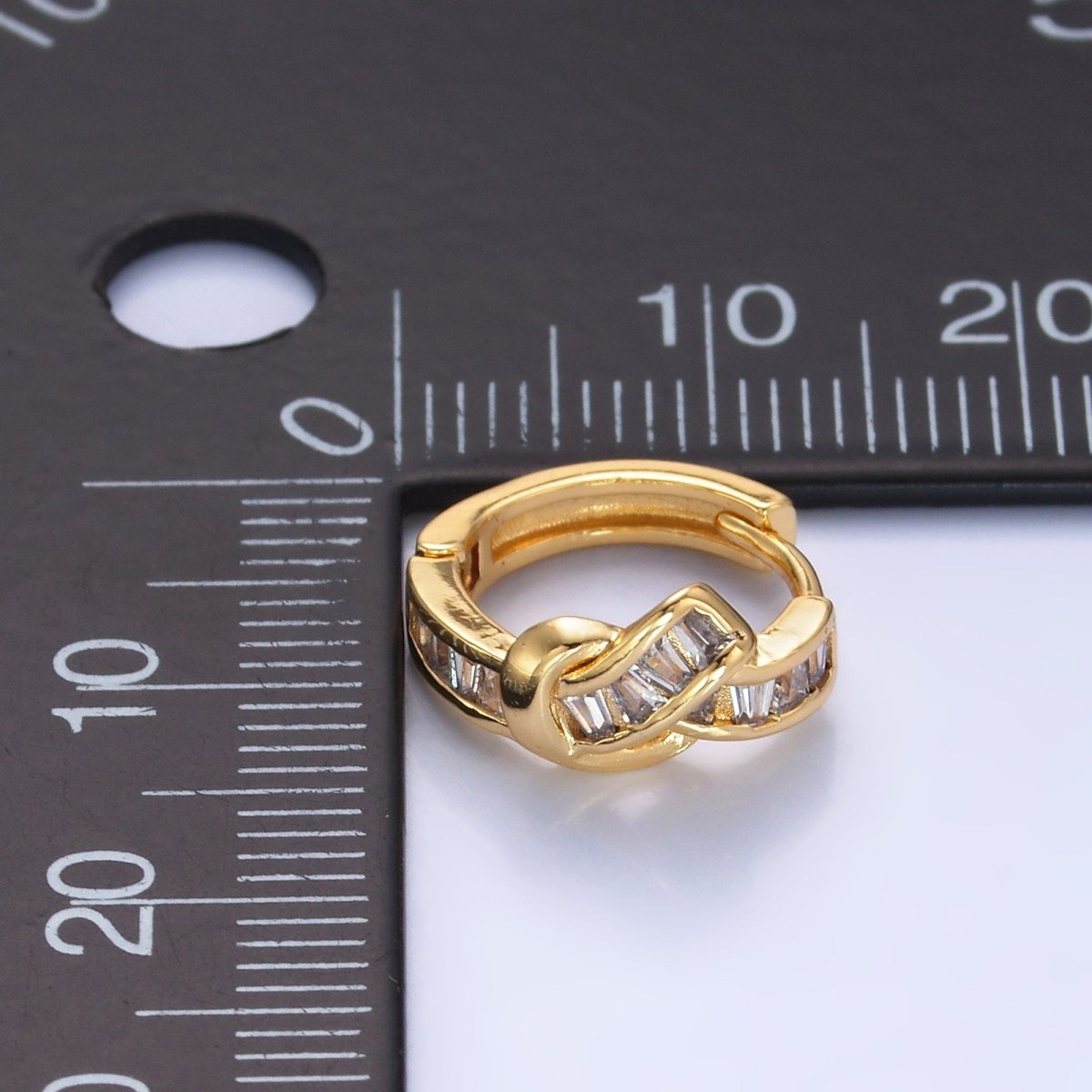 Timeless with a modern edge. These 24K gold filled huggie earrings feature an elegant knot design accented with shimmering baguette-cut cubic zirconia for just the right amount of sparkle. The interlocking shape symbolizes connection, strength, and effortless style—perfect for everyday wear or stacking with your favorite pieces.