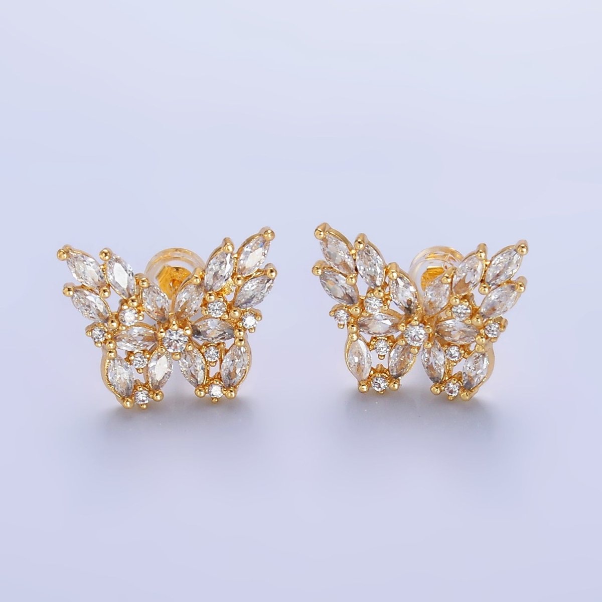 24K Gold Filled Marquise CZ Butterfly Insect Earring | AB984