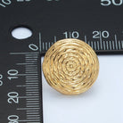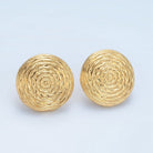 These 24K gold filled round stud earrings feature a layered, edged-line texture that adds dimension and subtle shine. The circular design keeps them classic, while the intricate surface detailing gives them a refined, elevated feel.
