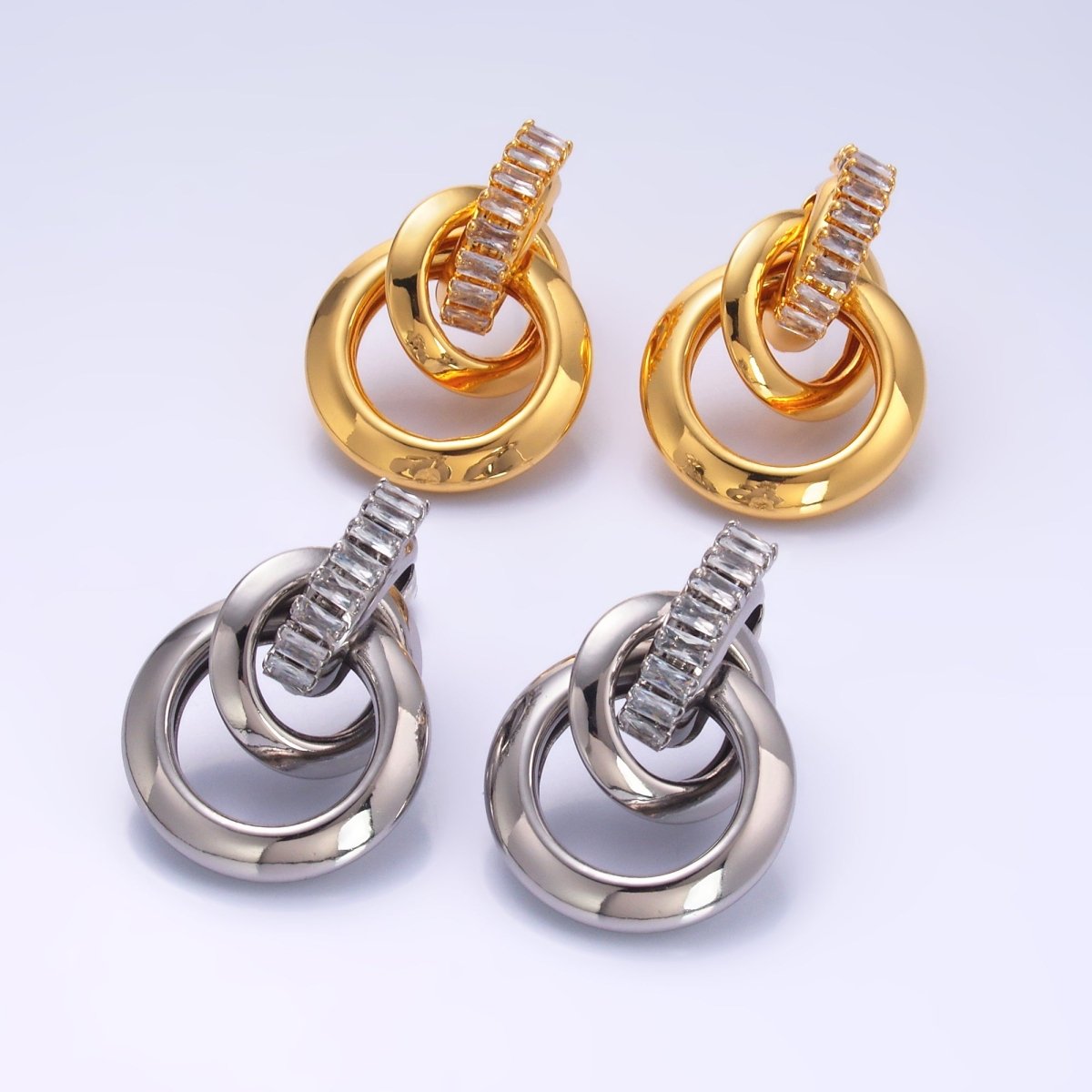 24K Gold Filled Baguette Door Knocker Geometric Stud Earrings in Gold & Silver