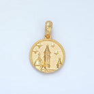 Crafted in 14K gold filled brass, the round medallion design offers a classic yet mystical feel, making it perfect for layering or wearing as a meaningful standalone charm. Whether it represents a place you love, a dream destination, or your connection to the cosmos, this pendant adds a touch of celestial romance to any jewelry collection.