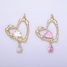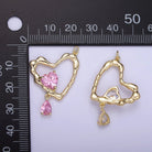 14K Gold Filled Clear, Pink CZ Open Heart Teardrop Drop Charm