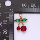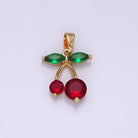 This 14K Gold Filled Cherry Pendant features vibrant red CZ stones paired with delicate green accents, creating the perfect pop of color against warm gold.