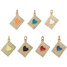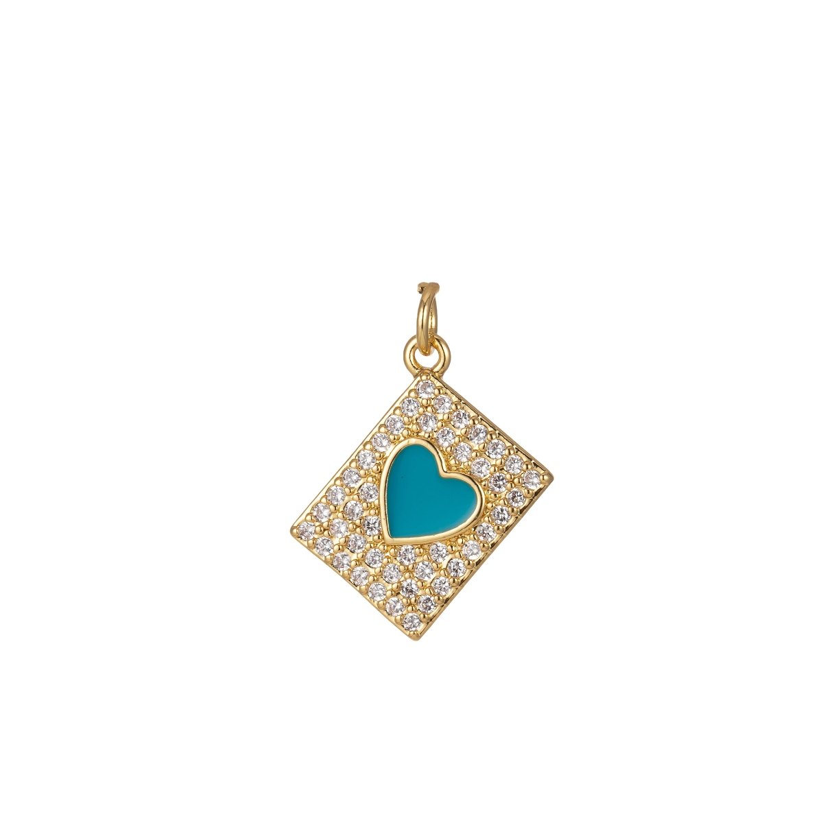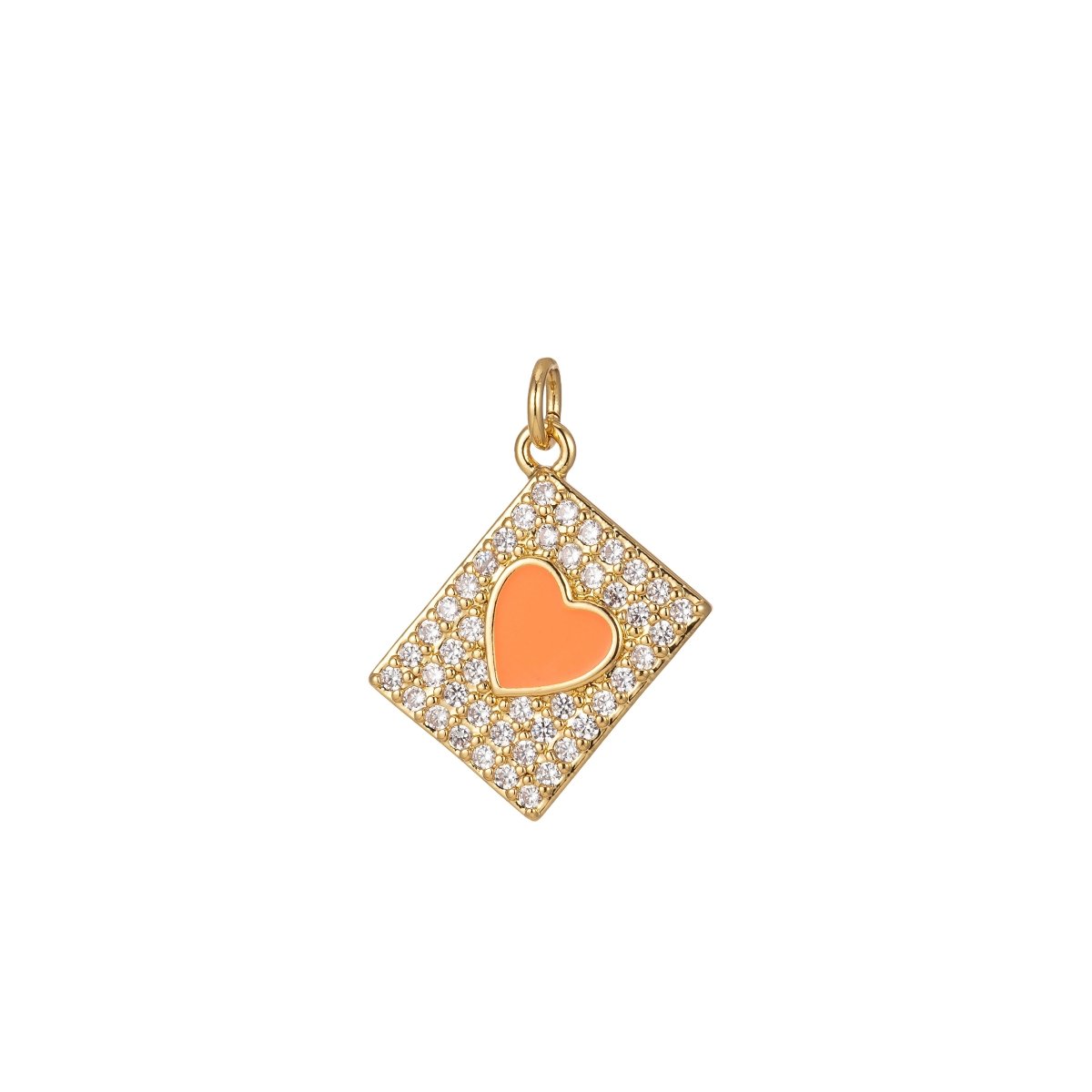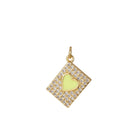 The Devotion Heart Tag Charm features a pavé-framed geometric tag silhouette centered with a glossy enamel heart—symbolizing deep connection, devotion, and emotional truth. Finished in radiant gold tone, this piece is designed to be worn close to the heart as a reminder of love in all its forms.