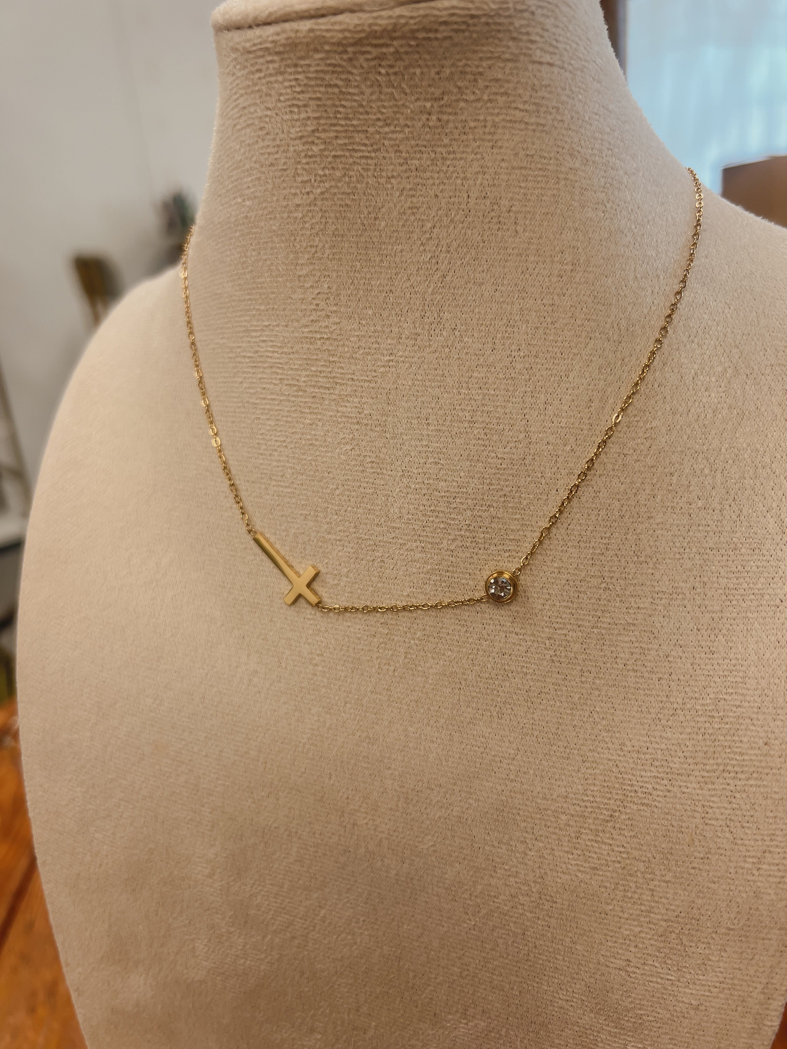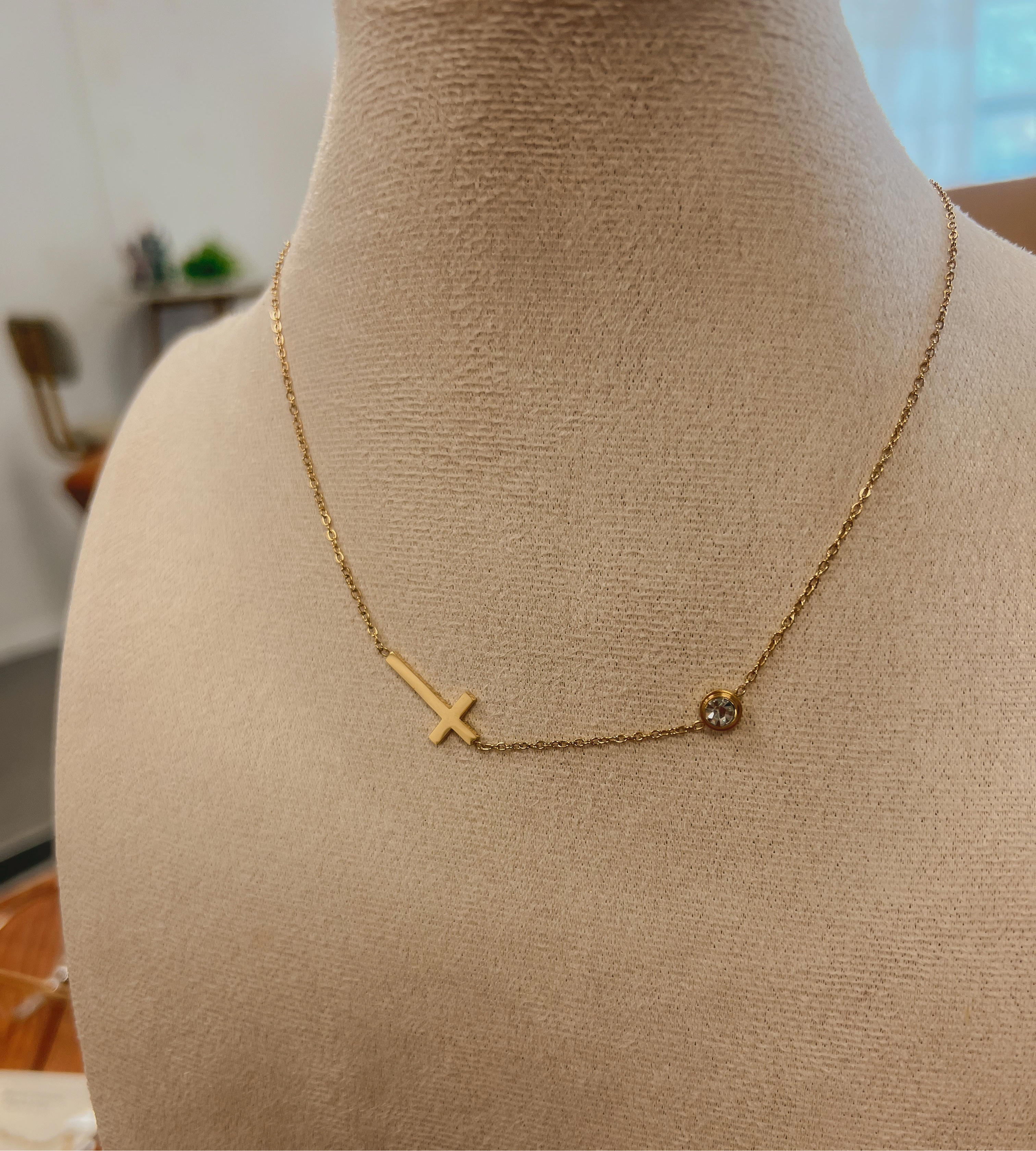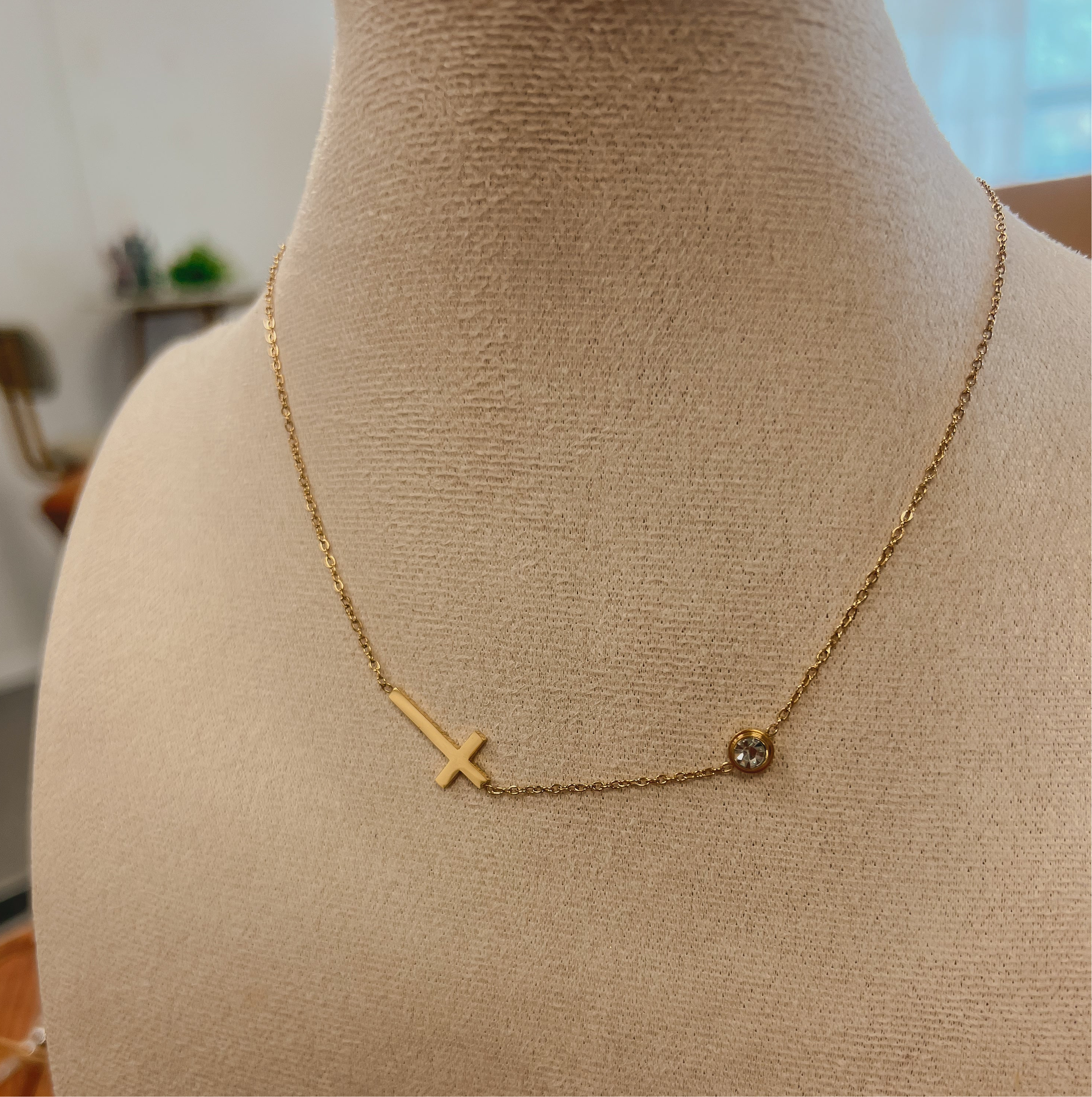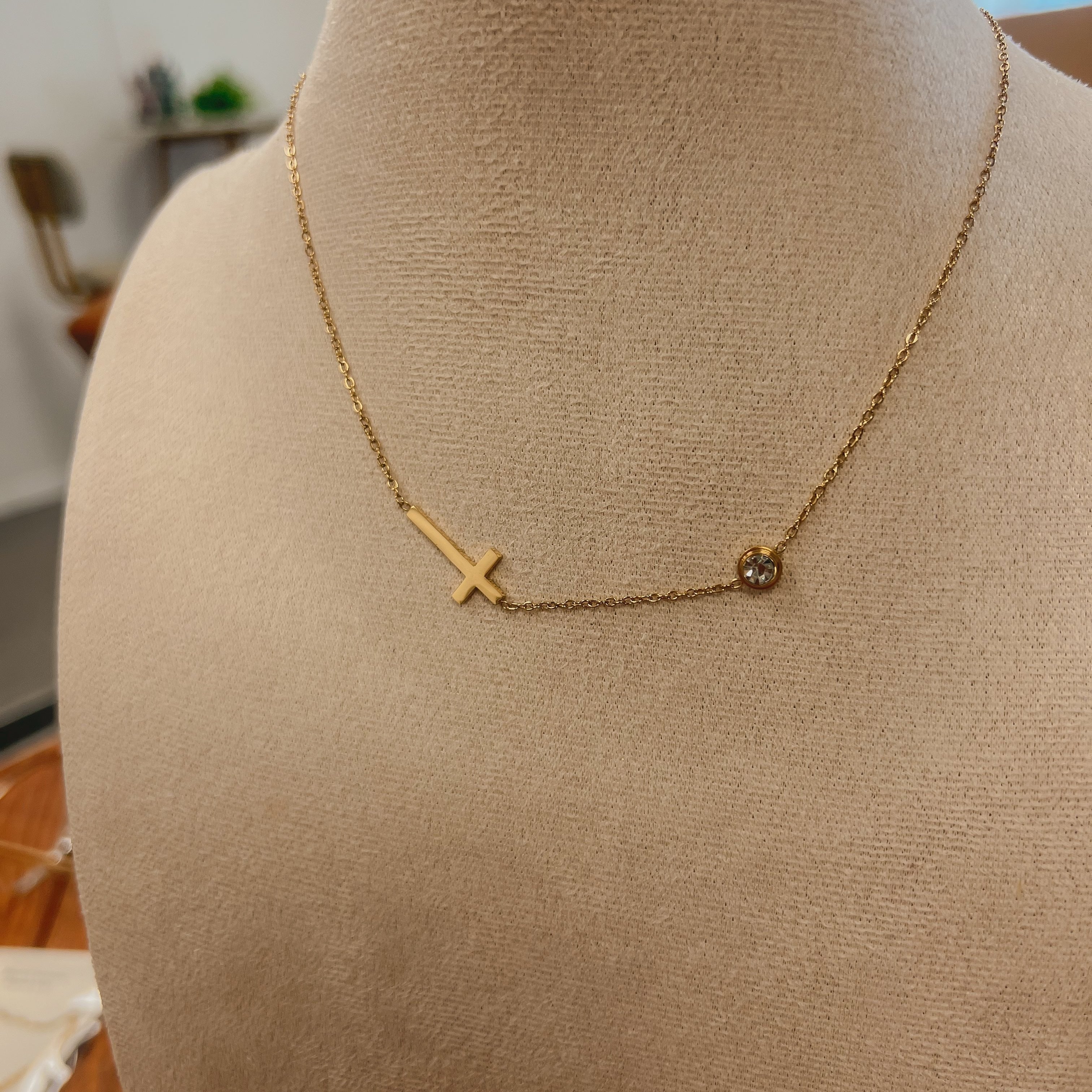 Simple style side ways stainless steel 18k gold sideways cross with zircon stone