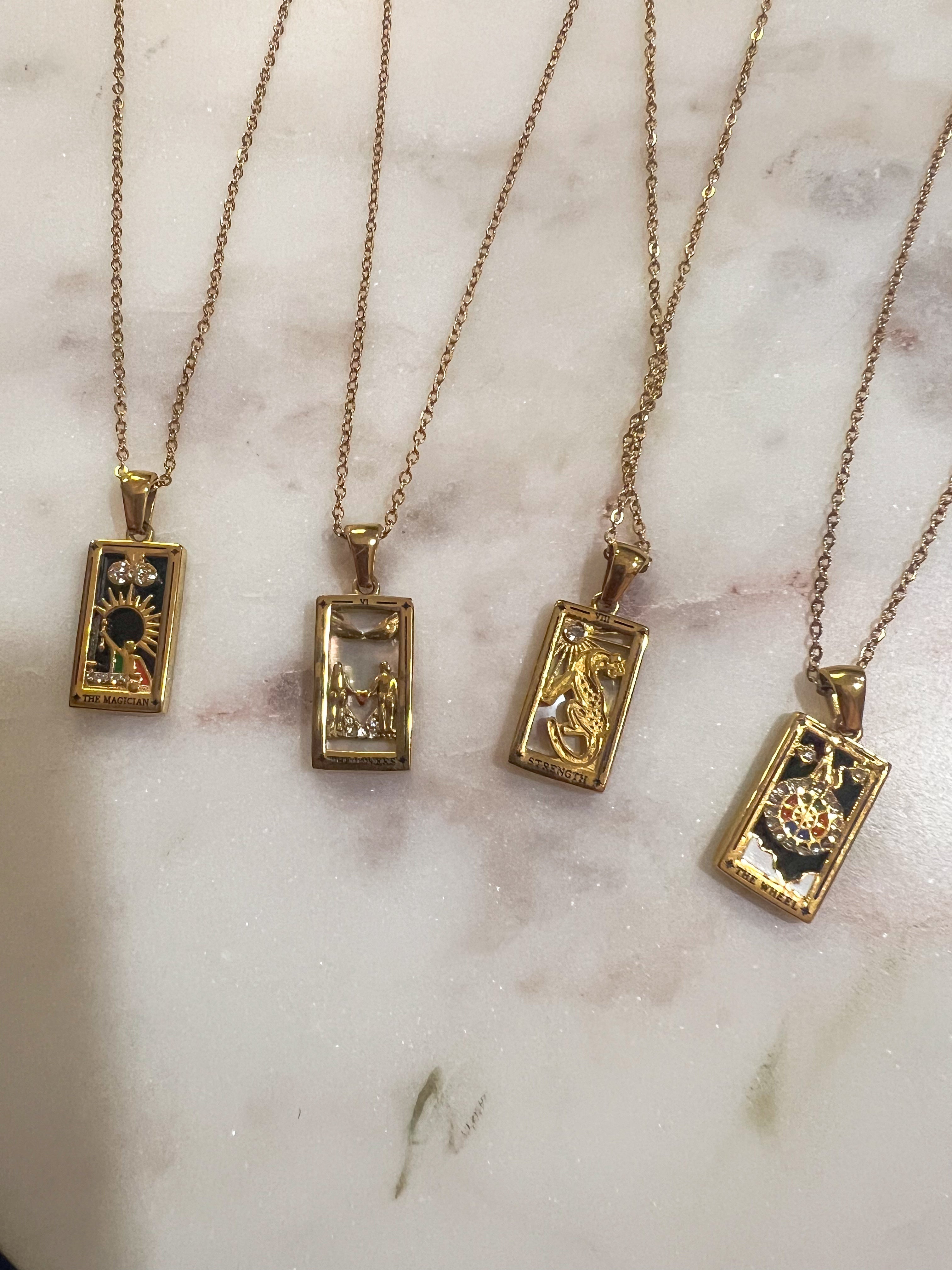 Unleash your inner mystic with our Tarot card pendant necklace. Not only is it the perfect unique gift, but it's also a stylish addition to any outfit. Embrace your quirky side and make a statement with this one-of-a-kind accessory.