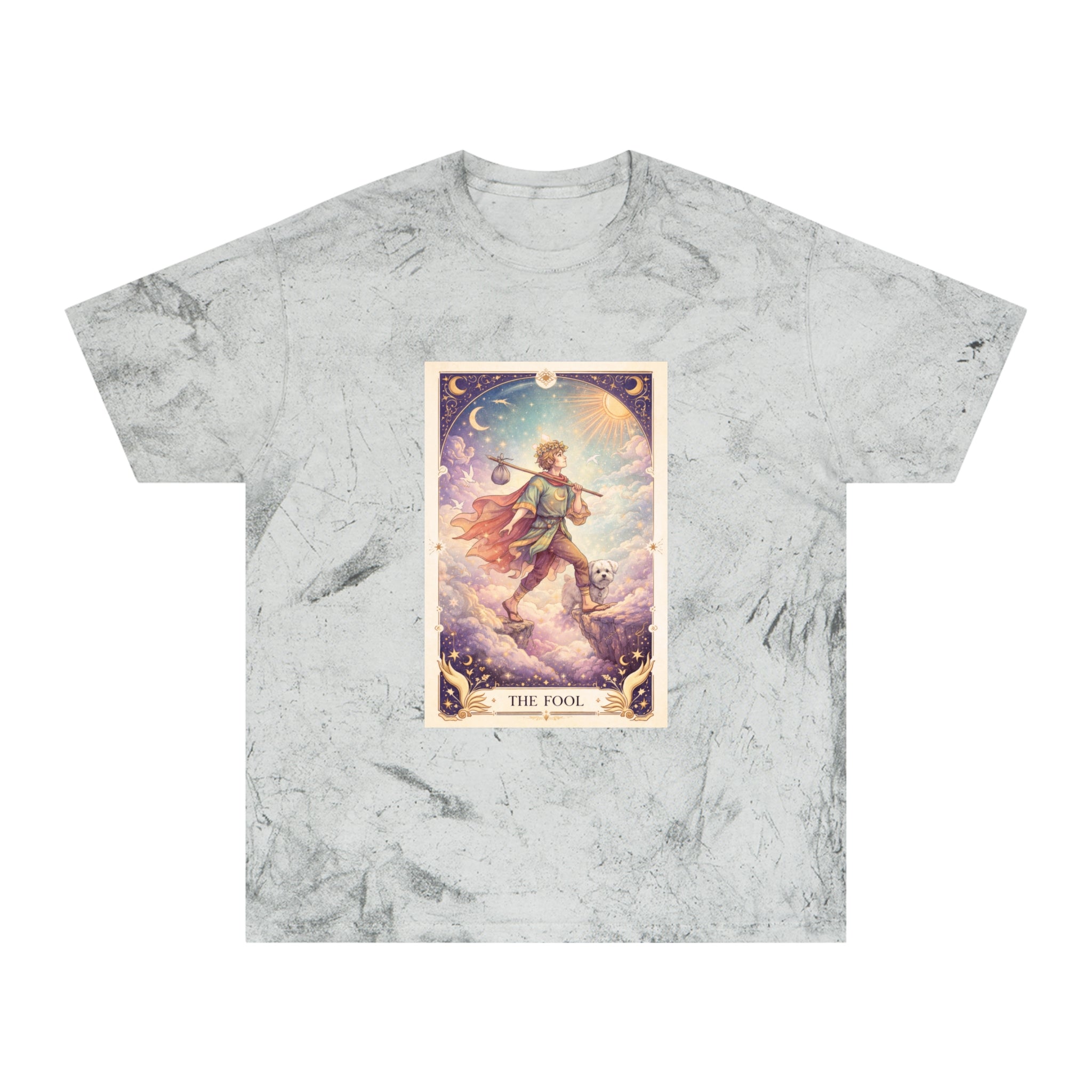 Printed on a Comfort Colors Color Blast tee, this shirt feels like a pocket of wonder you can wear. The garment-dyed, marbled fabric gives each piece a sun-washed, vintage character, making the tarot artwork feel timeless — as if it’s always belonged to you. No two shirts are exactly alike, mirroring the spirit of The Fool himself.