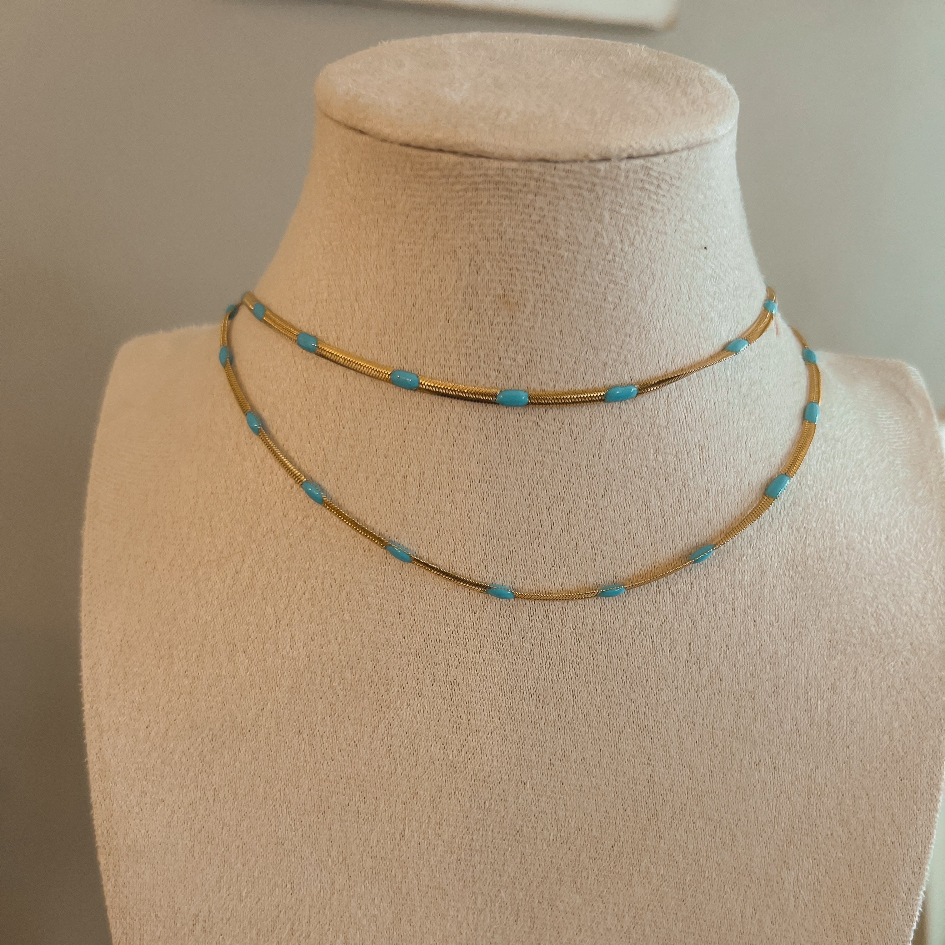 Vintage snake with turquoise embellishment. A simple chain that makes a statement. this chain is so versatile, can be work alone or layered with your favorite boho inspired piece.
