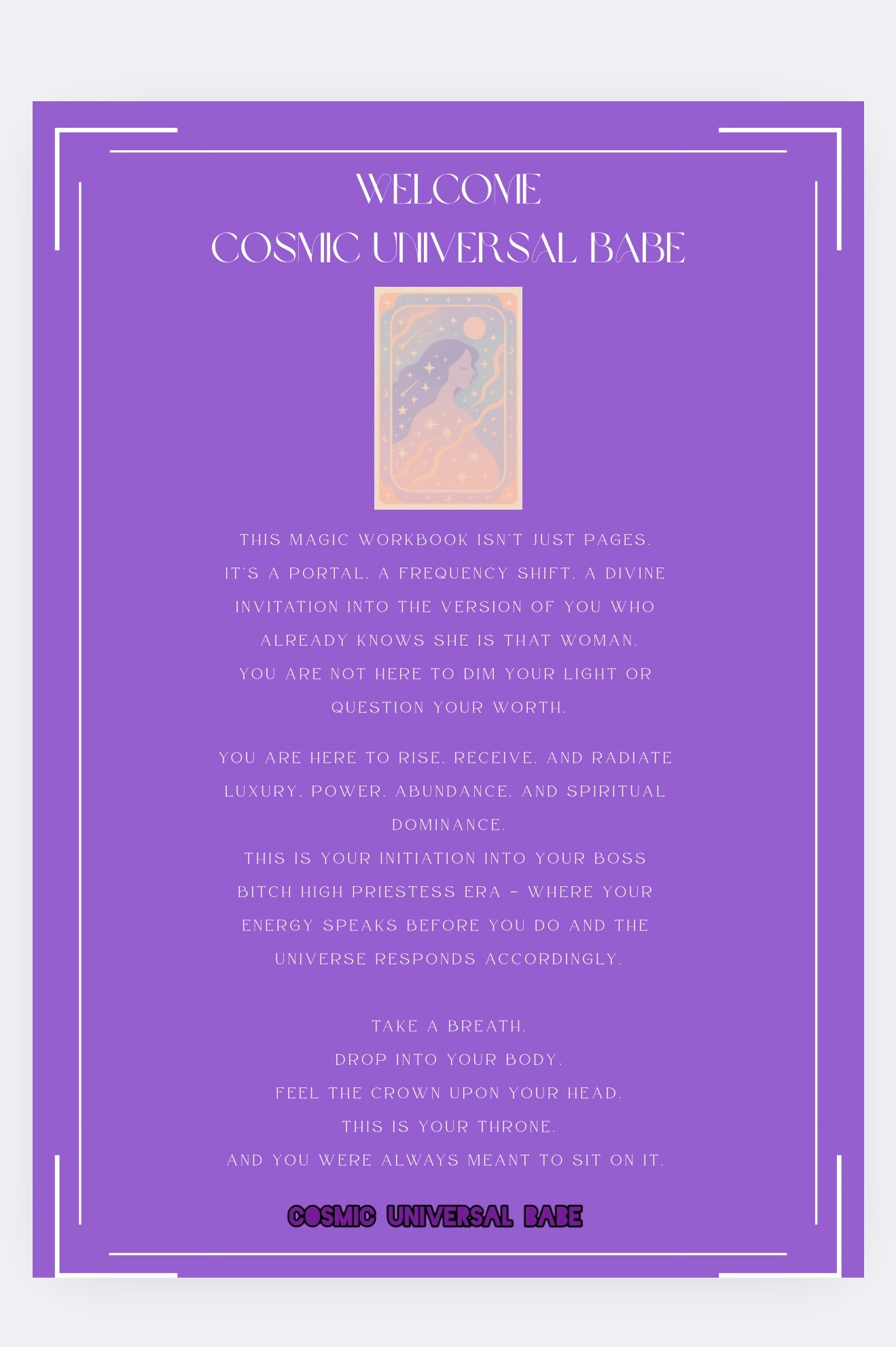 The Magic Journal Workbook is not just a journal — it is a sacred activation tool designed to awaken your inner power, elevate your frequency, and guide you into the fullest expression of your Cosmic Universal Babe energy.